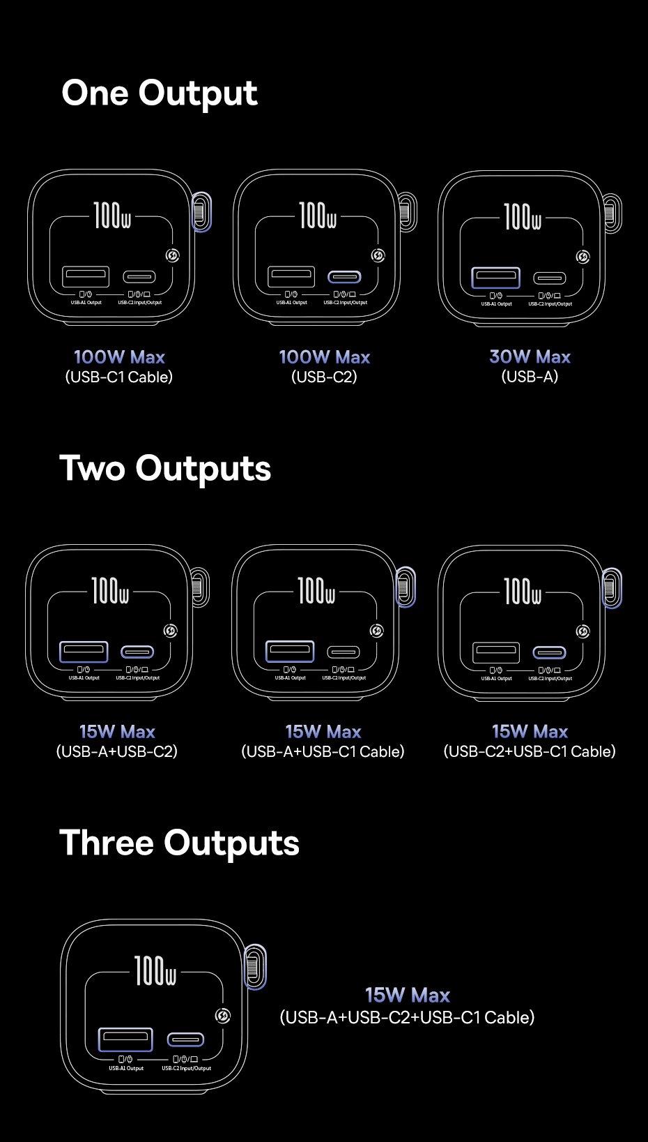 USB-C1 Cable +USB-C2 +USB-A1 Output