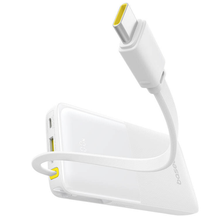 Baseus Bipow 2 10,000mAh 20W 3-Port Power Bank with Cable and Display - White Input 18W / Output 20W / 18W USB-A x1 / 20W USB-C x2