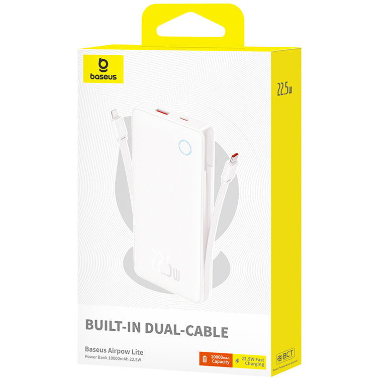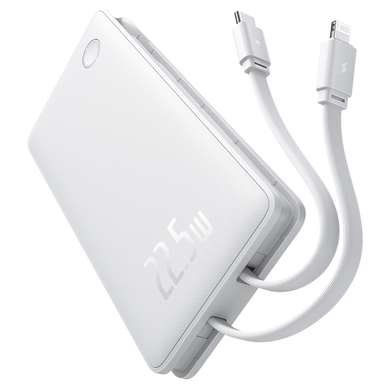 Baseus Airpow 10,000mAh 20W 4-Port Power Bank with Dual Cable - White Input 18W / Output 20W / 18W USB-A x1 / 20W USB-C x2 / 20W Lightning x1