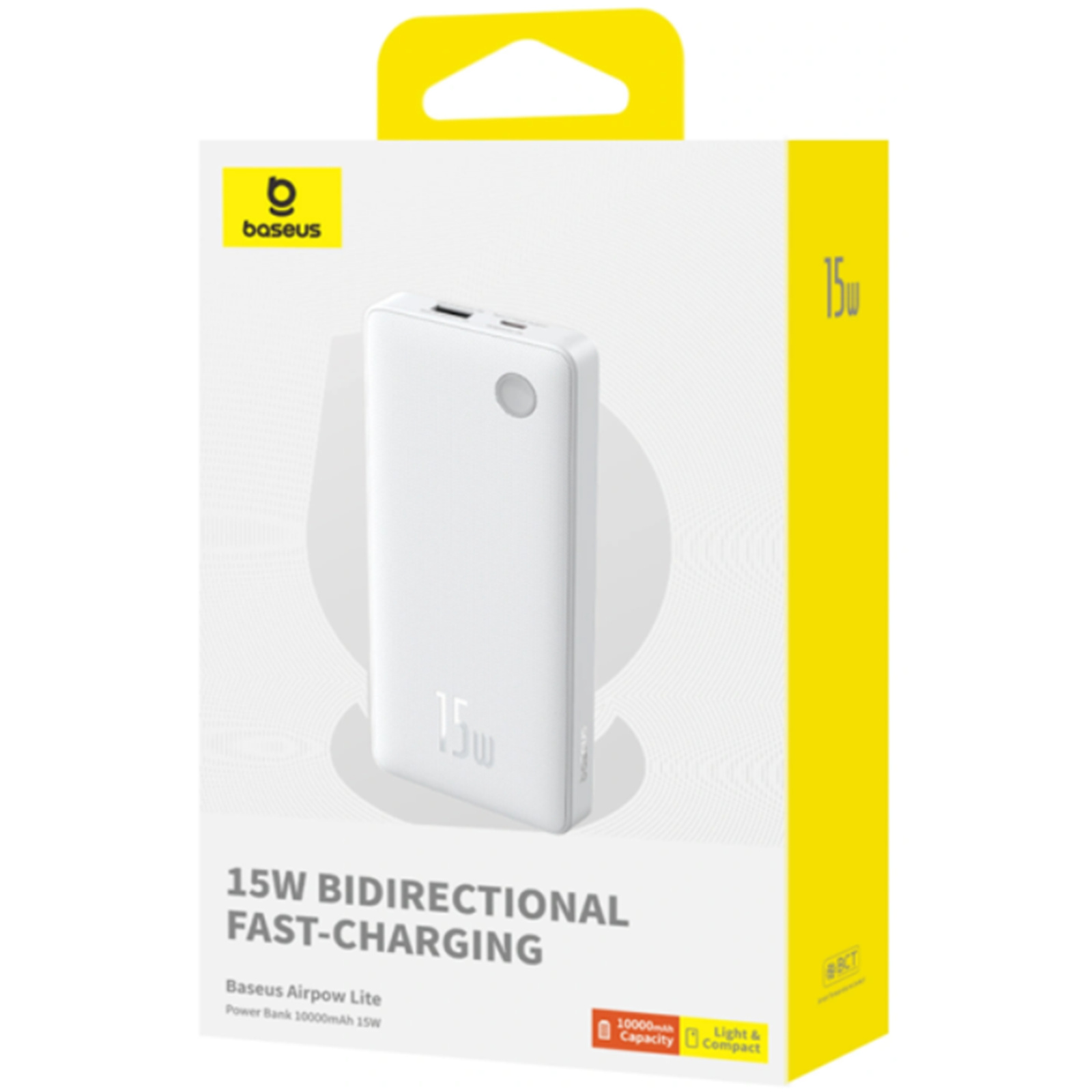 The Baseus Airpow Lite 15W 10000mAh Power Bank is a sleek and portable charging solution designed for convenience, efficiency, and compatibility with a wide range of devices. Its compact size and lightweight design make it the perfect companion for travel, work, or daily commutes.