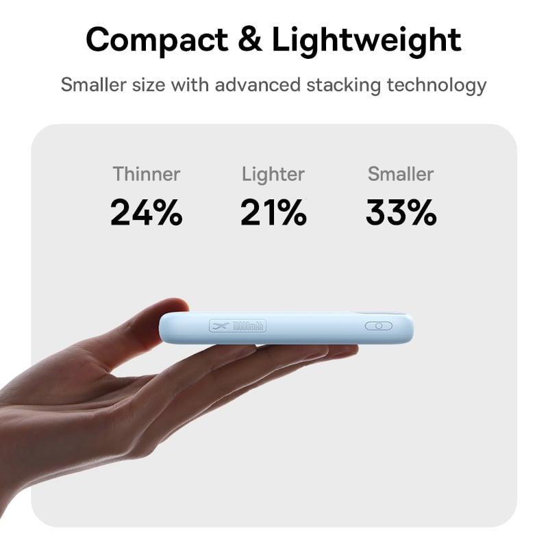 With two capacity options, 10,000mAh and 20,000mAh, you can easily choose the version that suits your needs. The compact design makes it easy to carry with you anytime, anywhere.