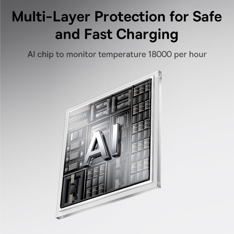 Integrated smart AI chip automatically recognizes the device, adjusts the current accordingly, and monitors temperature, ensuring efficient and absolutely safe charging.