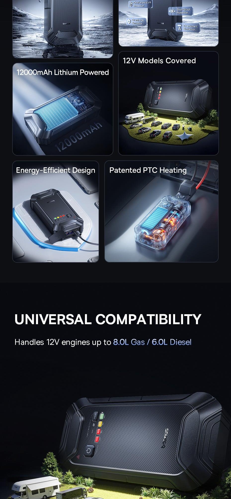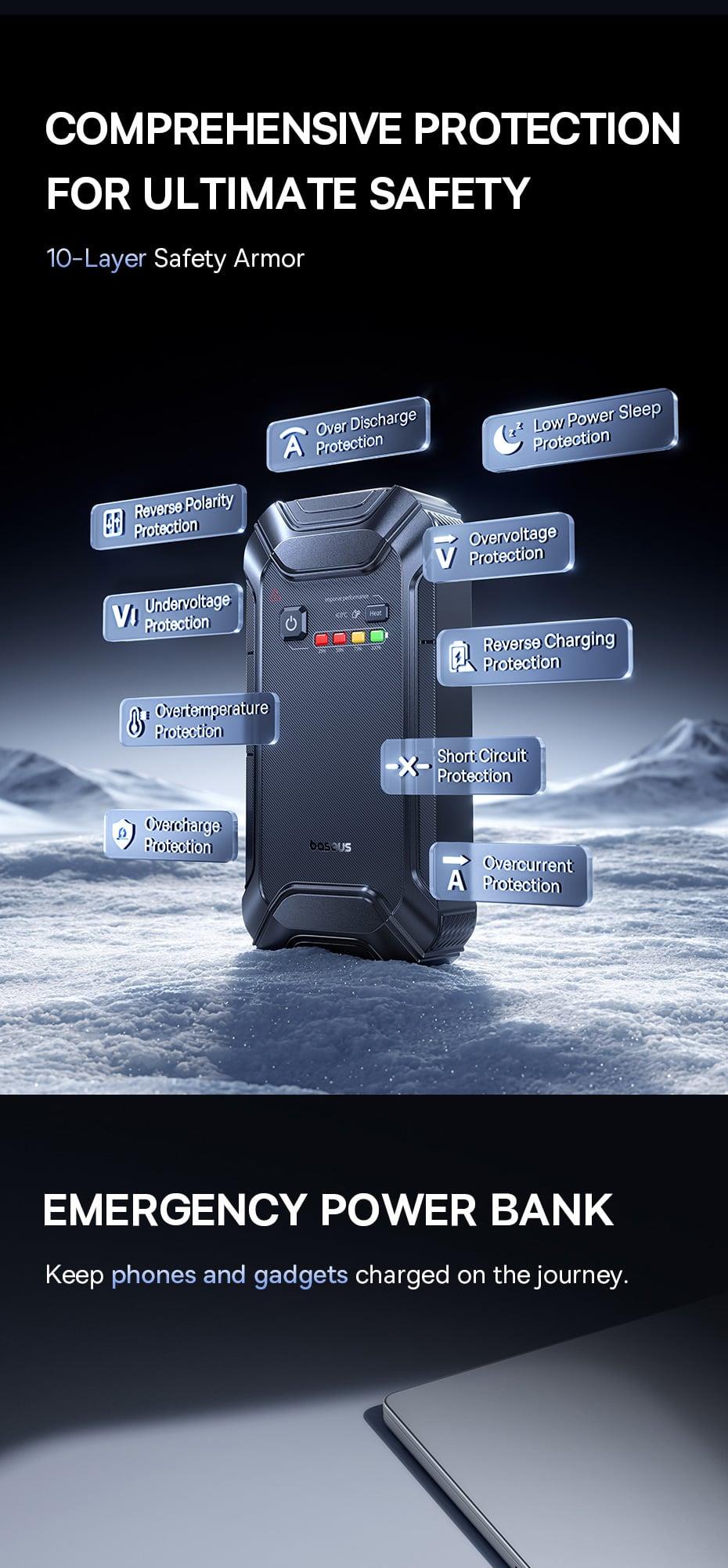 The product is equipped with 10 layers of intelligent protection against reverse polarity, short circuits, overheating, and many other risks, ensuring absolute safety for both the user and the vehicle.