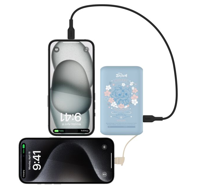 Belkin BoostCharge 10K 20W Power Bank with Integrated Cable- Stitch (Disney Collection) Its integrated USB-C cable design offers a convenient on-the-go fast charging experience without carrying a cable. A USB-C port allows charging of a sec