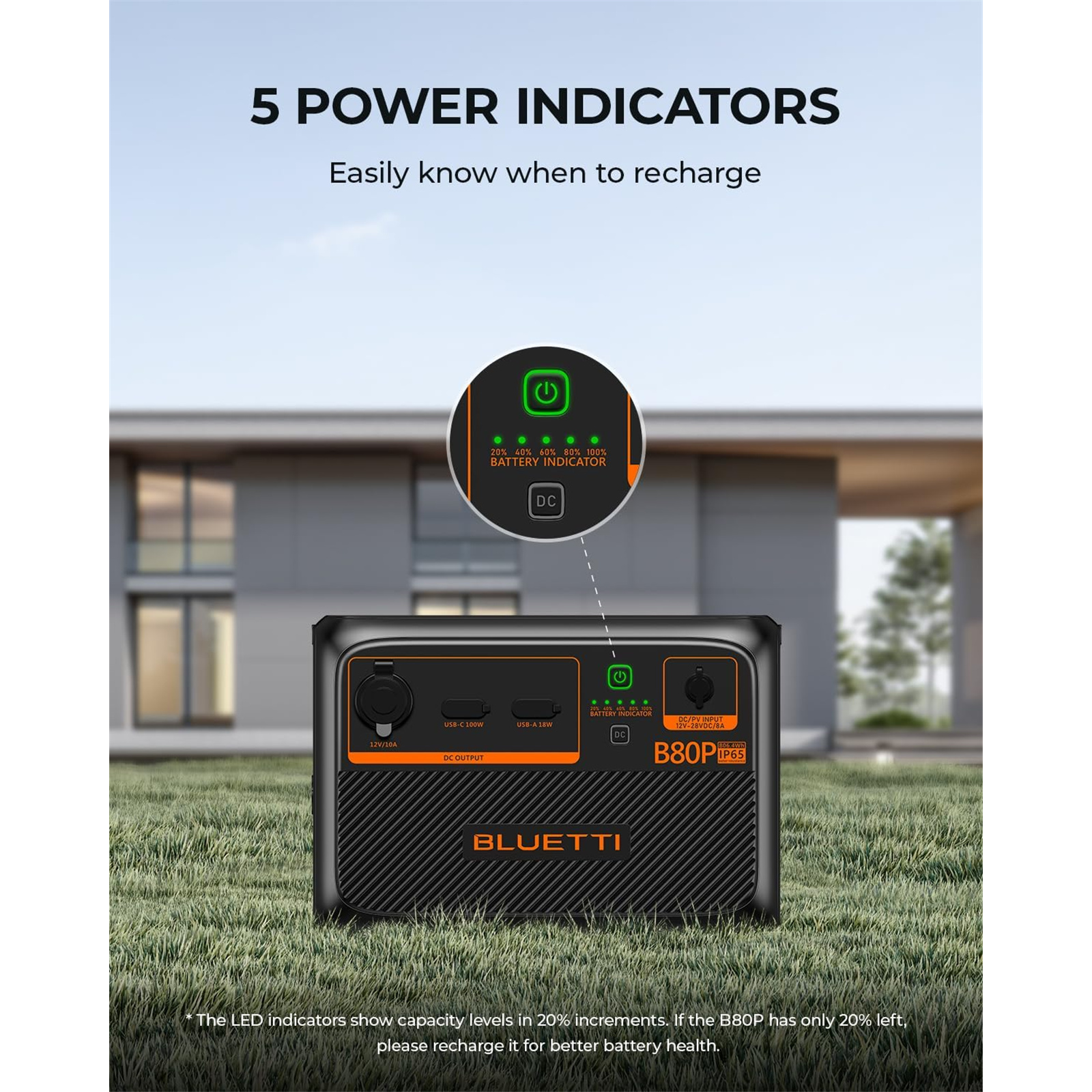 Bluetti B80P Expansion Battery AC60P ONLY Capacity 806WH 1* USB-C 100W, 1 USB A Port, 200W Solar Input