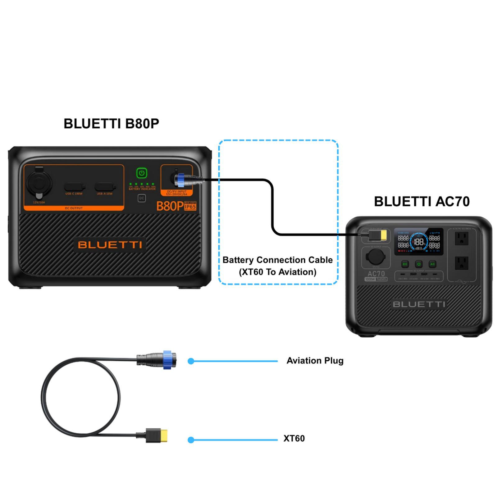 Bluetti B80P for AC50B, AC2A, AC70 Expansion Battery Bundle with XT60 Cable Capacity 806WH 1* USB-C 100W, 1 USB A Port, 200W Solar Input