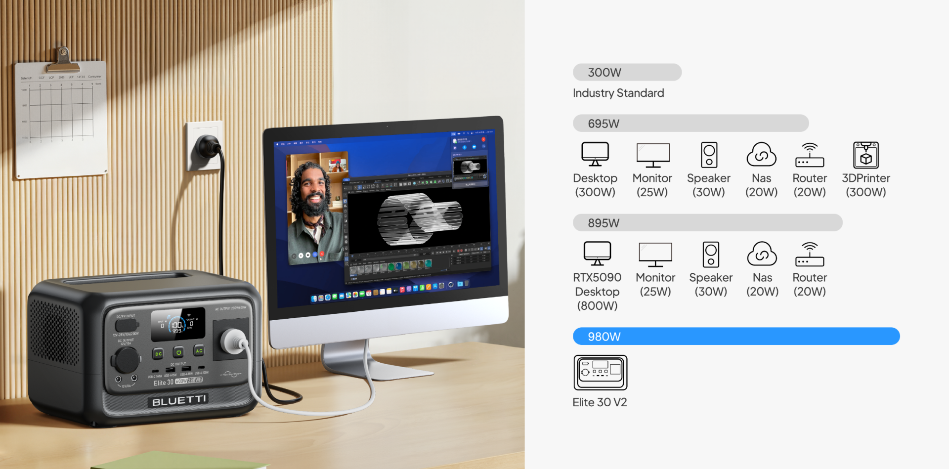 The Elite 30 V2 gives you 8 output ports and a reliable 600W continuous supply-perfect for running multiple small devices at once. Elite 30 V2 also features a USB-C port with PD 3.1 protocol, delivering up to 140W output-enough to rapidly charge high-performance laptops like MacBook Pro."