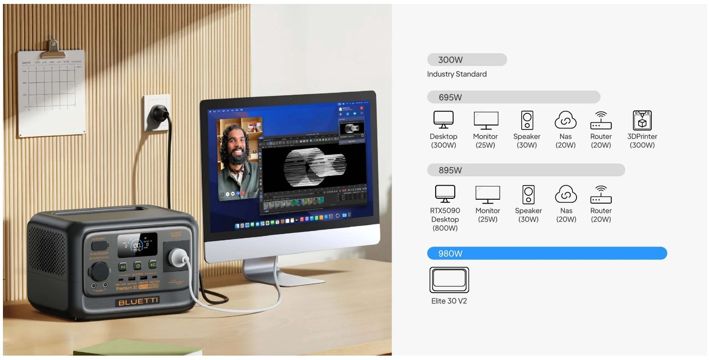 The Premium 30 V2 gives you 8 output ports and a reliable 600W continuous supply-perfect for running multiple small devices at once. But it doesn't stop there. With up to 1,500W lifting power, it can also handle high-resistance heating devices like mini coffee makers, kettles, and toasters-pushing the boundaries of what a compact power station can do. *Power Lifting Mode supports up to 1,500W resistive appliances.