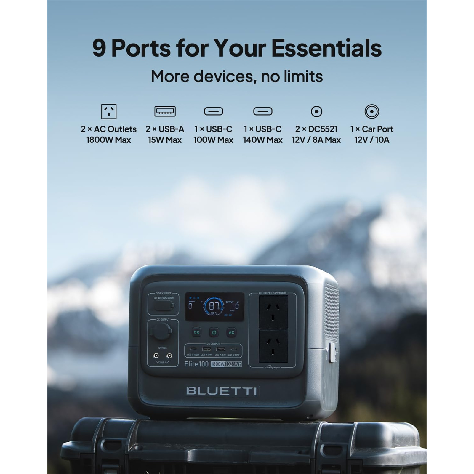 Bluetti Premium 100 v2 Portable Power Station 1024WH 2* AC 1000W, 1* USB-C 100W, 1* USB-C 140W, 2* USB-A 15W