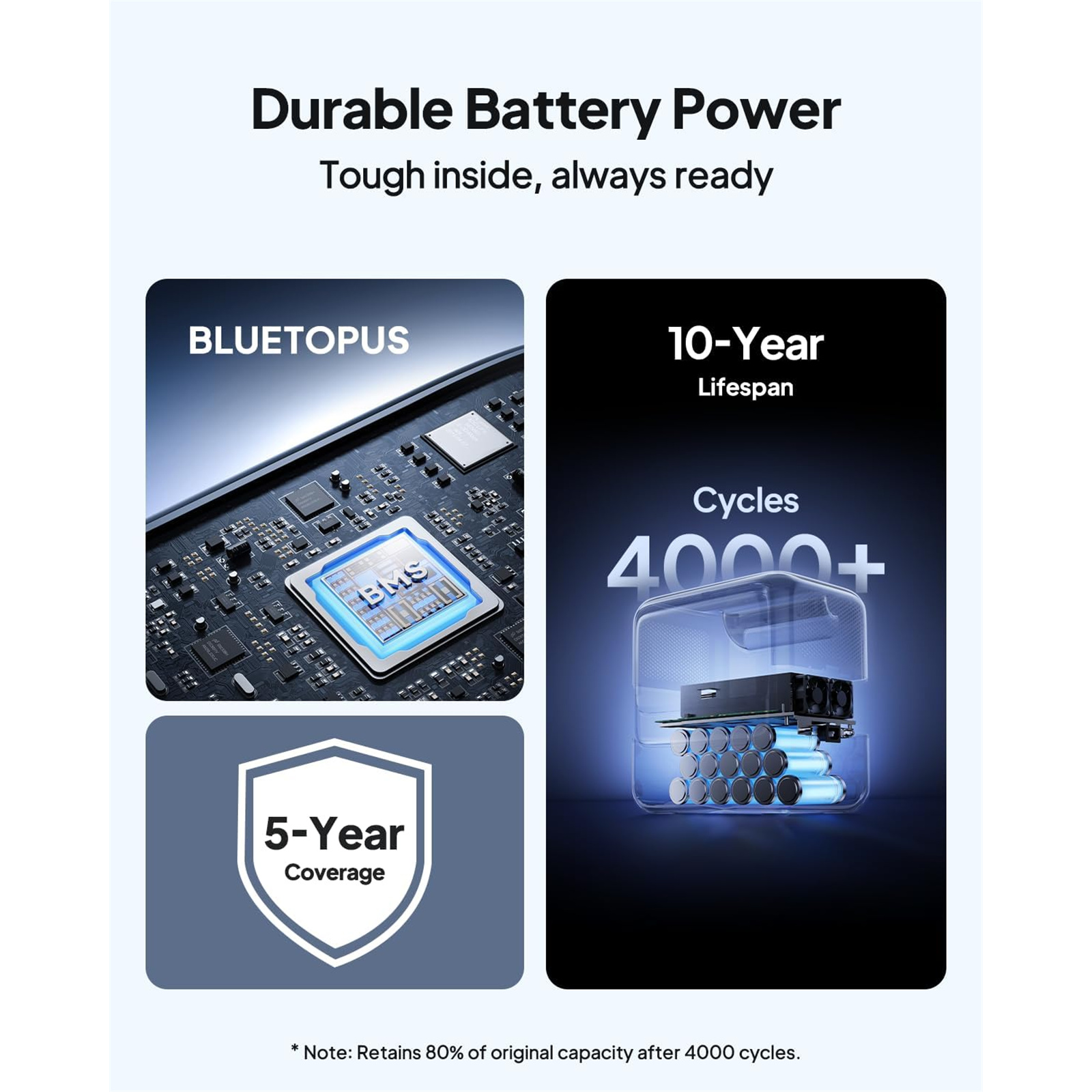 - 10-Year Battery Life: Premium LiFePO₄ cells with over 4,000 cycles. Safe, stable, and designed to last a full decade.