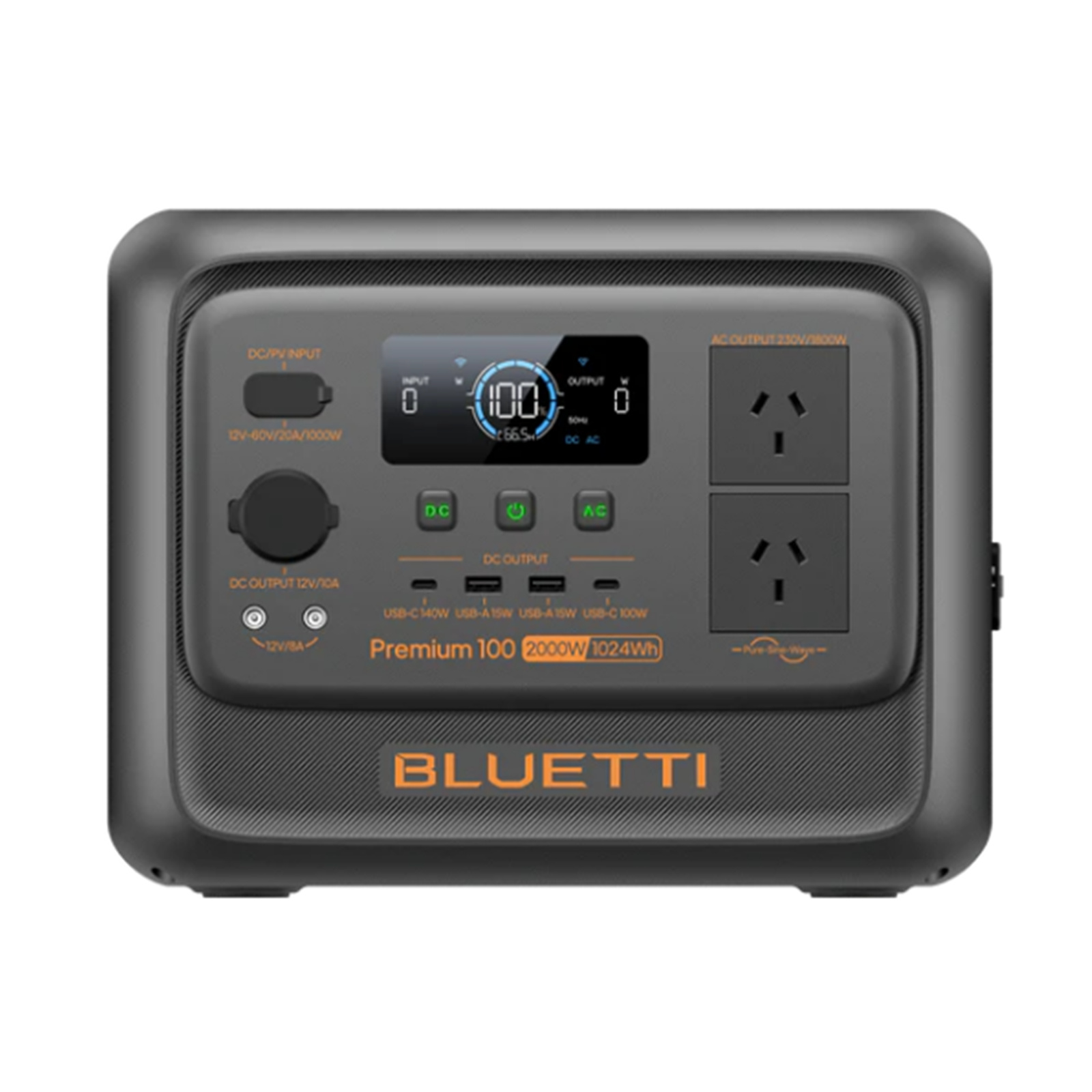 Bluetti Premium 100 v2 portable Power Station Capacity 1024wh, AC Output 2000W, Surge (3600W) 4* AC Outlets (1800w), 2* usb-a 15w, 1 * usb-c 100w, 1*usb-c 140w, 1000W Max Solar Input 380W AC Input, <10ms UPS switching, 11.5kg, Noise Level <