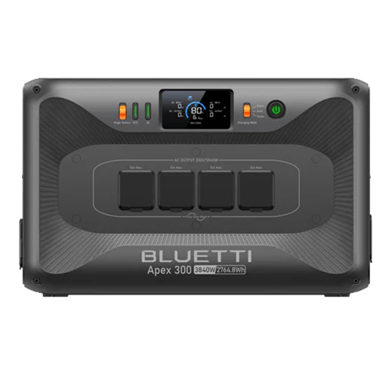 Bluetti Apex 300 Portable Power Station 2764wh, 3840w build up to 3840w to 11.52kW Output, Plug and play setup with instant 20ms UPS switchover, Supports up to 11.52kW generator charging at 230v, up to 19.2kW Solar Charging.