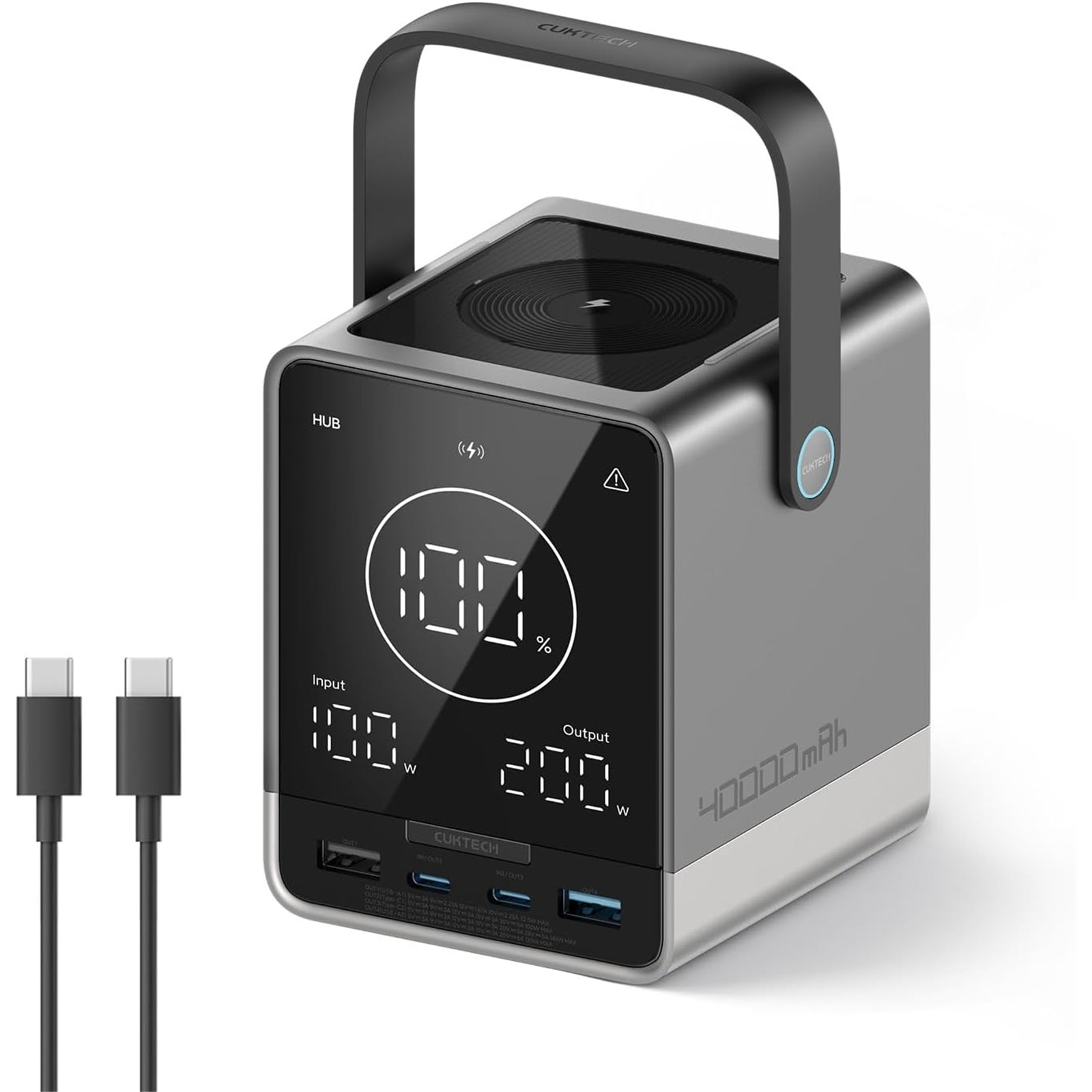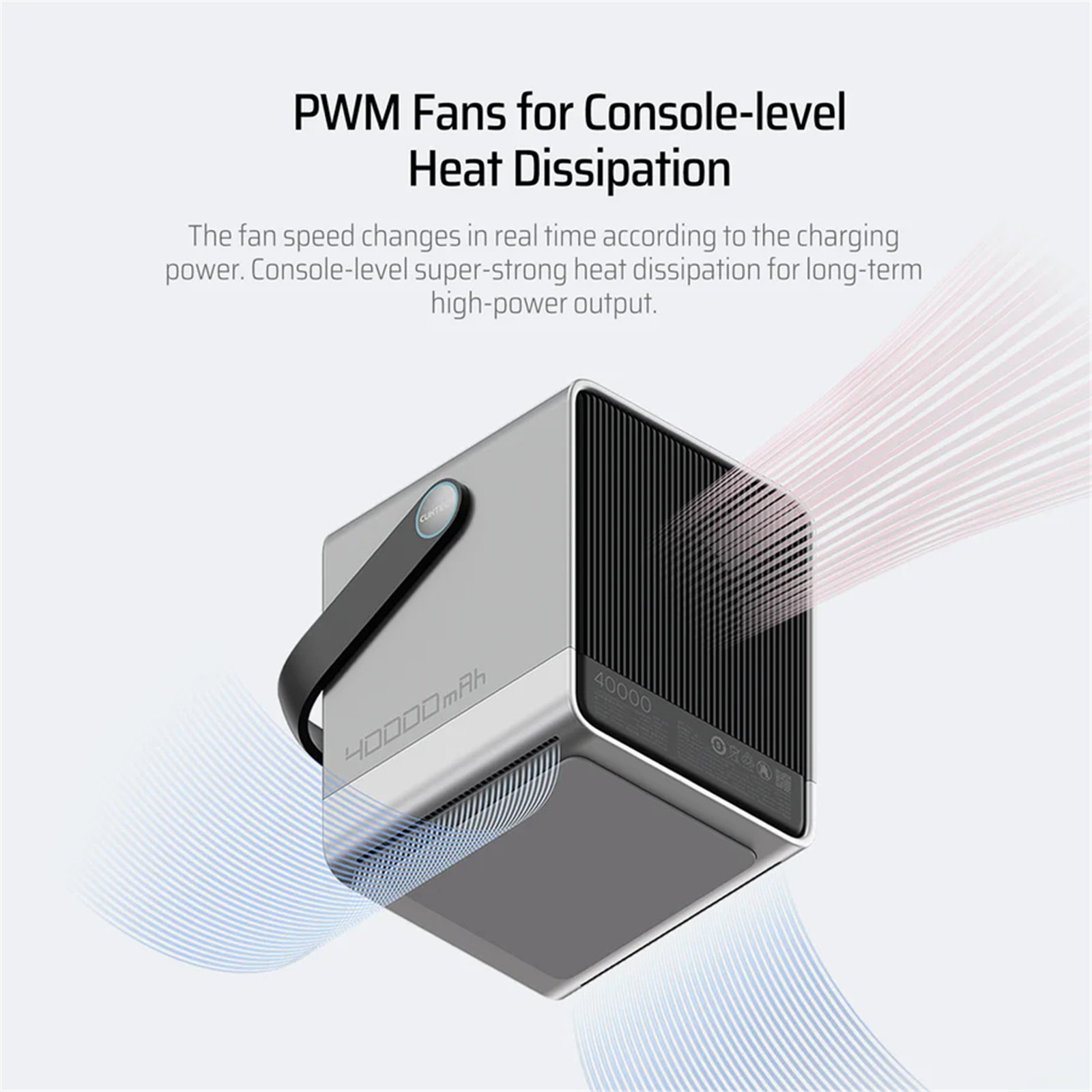 CUKTECH No.30 40000mah Fast Charging Power Bank - Max 300W Output Up to 140W Single Port Laptop Fast Charging - 5x Output (2x USB-C / 2xUSB-A / Wireless Charging) - Built-in Smart Control Fan - USB Hub Expnasions - Large Power Display