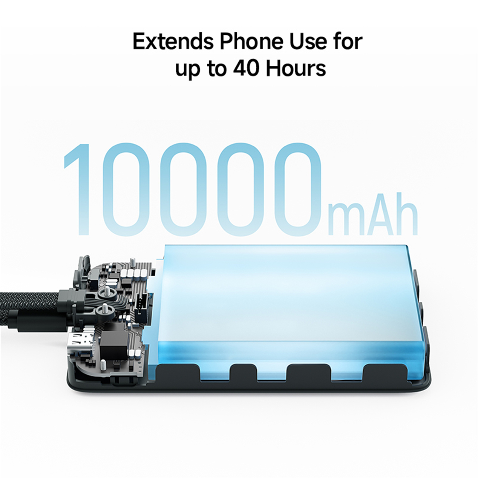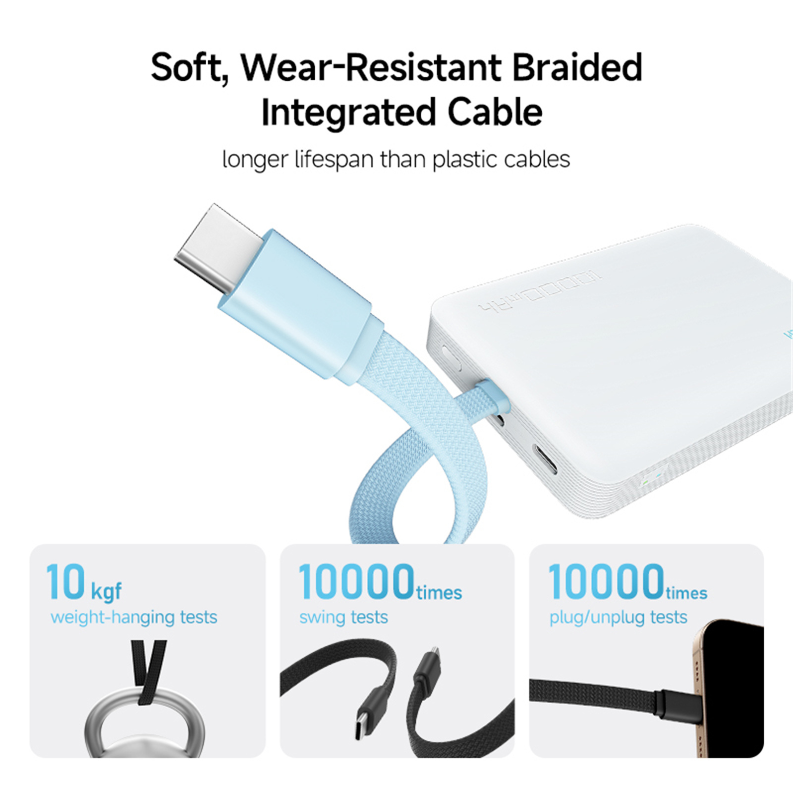 CUKTECH CP132ML 10000mAh Magnetic Wireless Charging Power Bank - White Built- in Braided USB-C Cable - Wireless Fast Charging - 20W PD Fast Wired Charging - 7.5W Magnetic Wireless Charging - Charge 3 Devices simultaneously