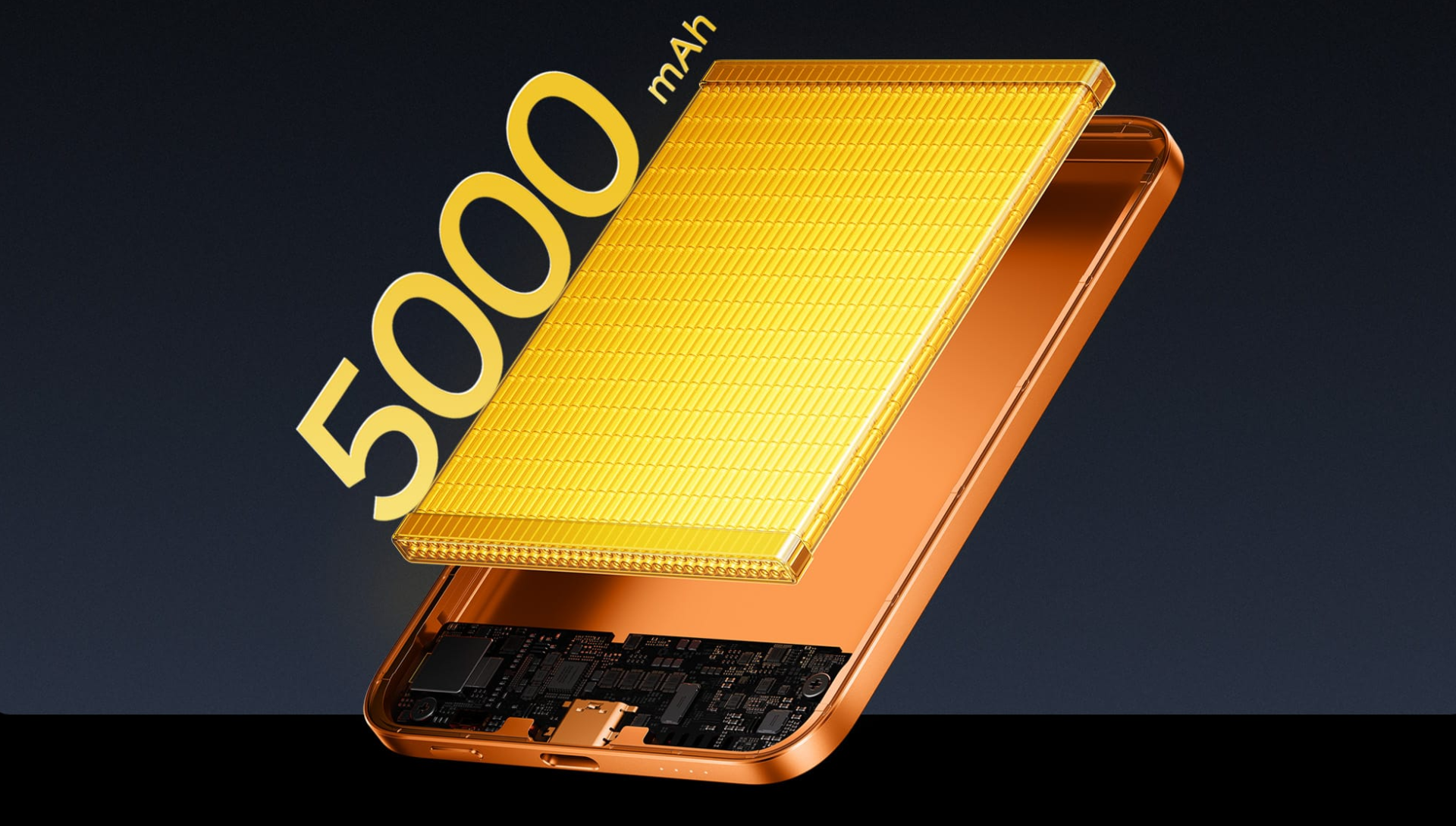 The power bank features a high-energy-density silicon-carbon battery with 16% silicon content, paired with a 4369mm² graphite sheet, delivering a powerful 5,000mAh capacity in an ultra-slim, card-like body that's perfect for everyday charging.