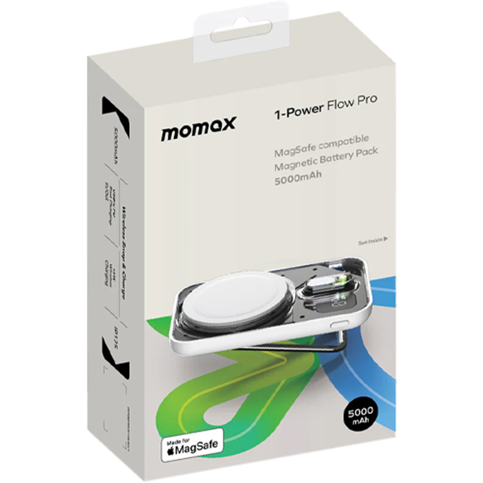 Momax 1-Power Flow Pro+ 5000mAh 20W 3-Output MagSafe Magnetic Wireless Charging Power Bank Input 20W / Output 20W /20W USB-C / Qi2 15W Wireless Charging