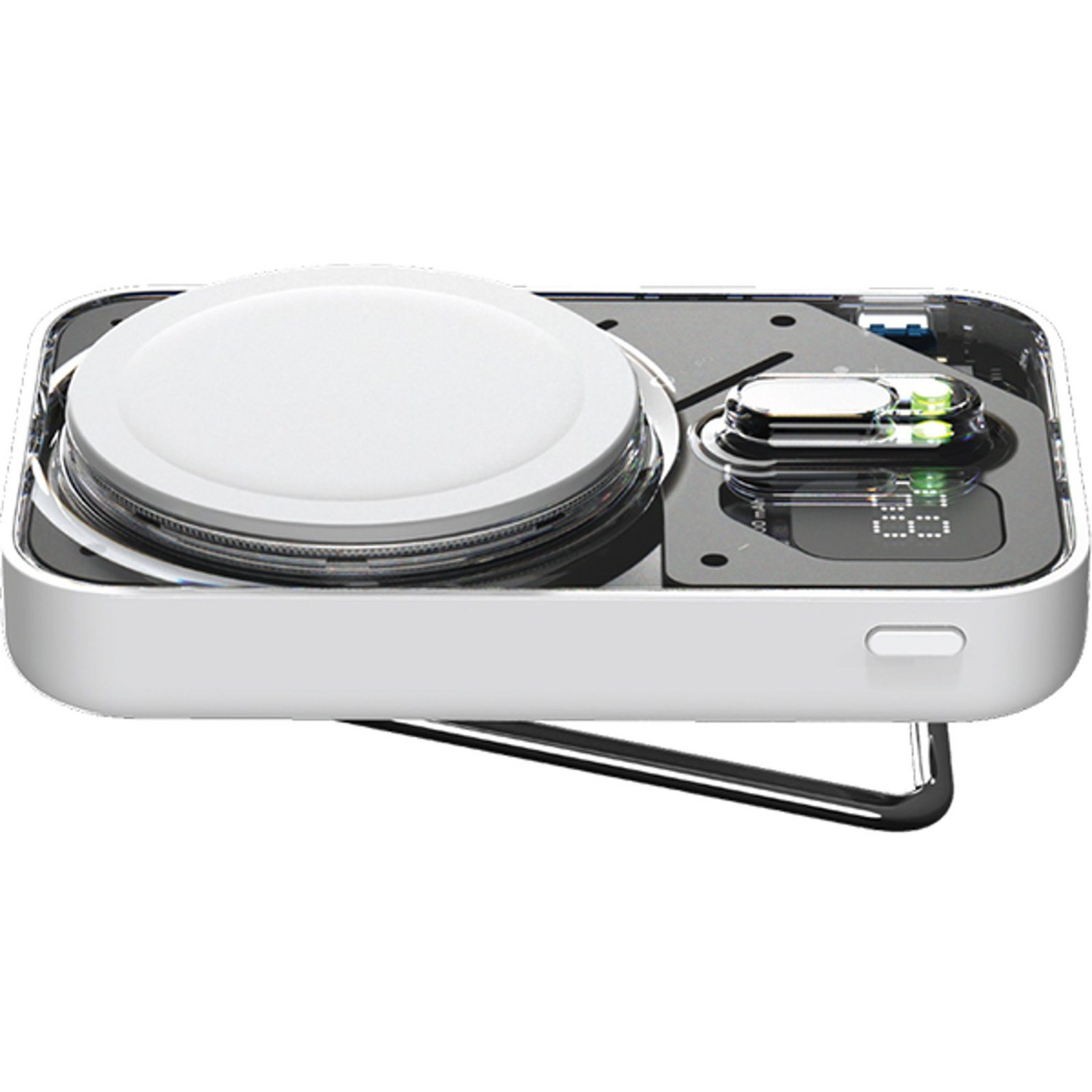 Official MagSafe | Wireless | Fast Charging | 5000mAh | Transparent Design | Apple Certified Made for MagSafe | MFM Original Apple MagSafe module | Transparent surface | LED display for battery percentage | Indicating light for on/off indication | Kick stand to keep phone upright | Rated Capacity: 2800mAhOn-The-Go Functionality