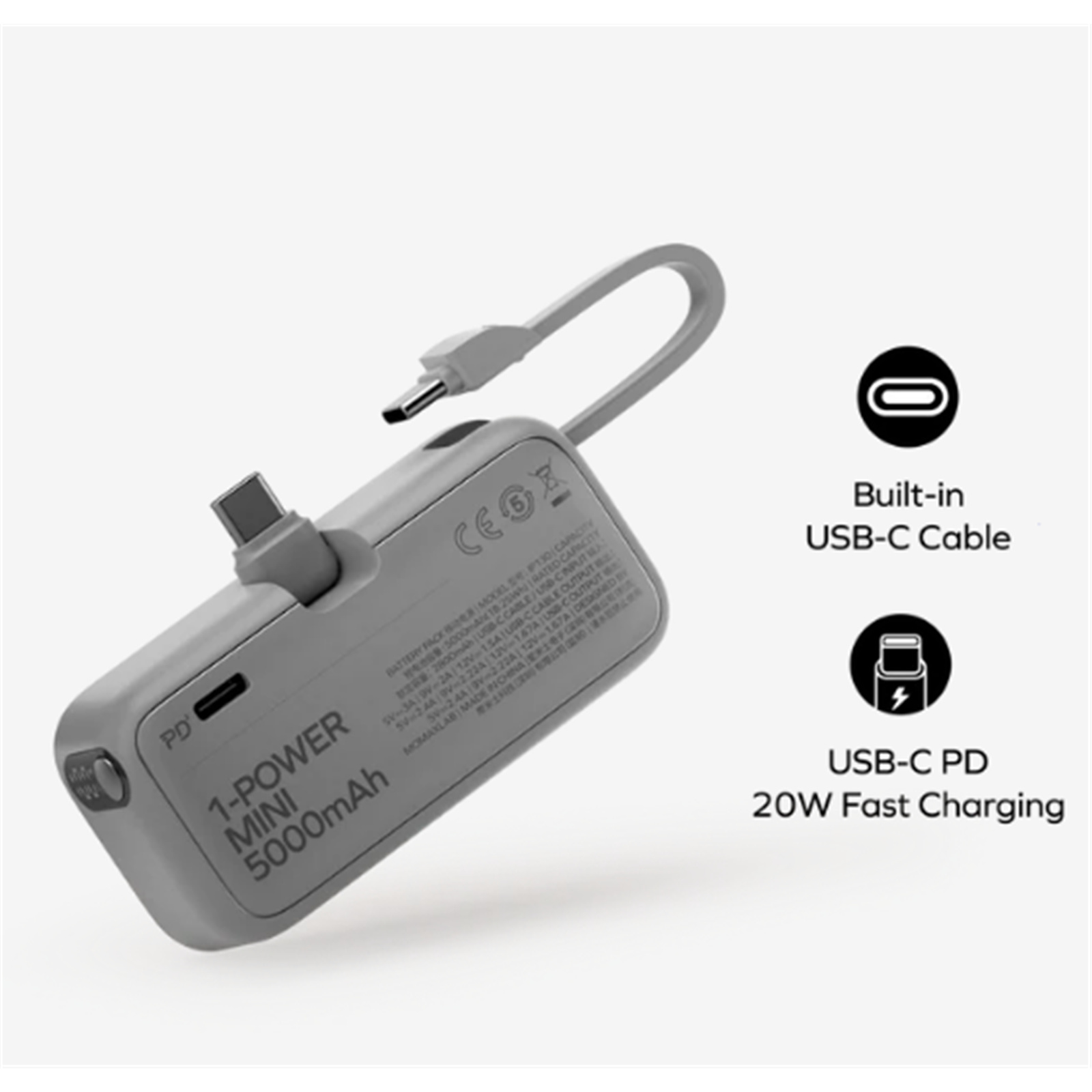 - 1-Power Mini - Bulit-in foldable USB-C Battery pack (5000mAh)