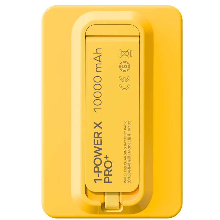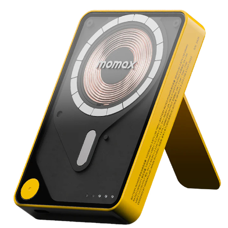Momax 1-Power X Pro+ 10000mAh Magnetic Wireless Charging Power Bank - Yellow - - MagSafe compatible - 20W PD Fast Charging - Built-in USB-C Charging Cable- Charge up to 3 devices simultaneously - Built-in Metal Kick Stand
