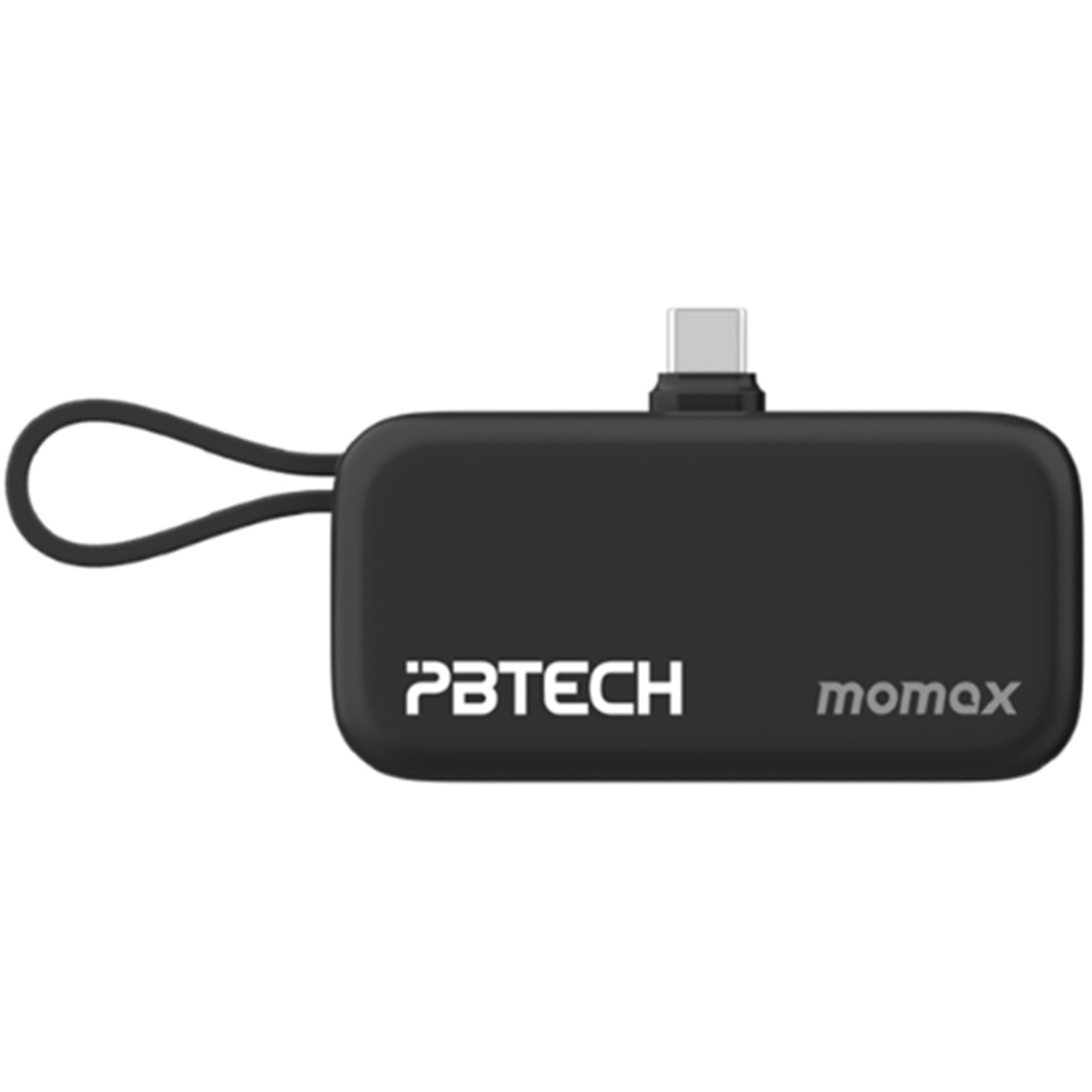 Momax 5000mAh 20W PD Fast Charging Mini Power Bank - Black - PB Special Edition - Built-in USB-C Charging Cable - Portable & Lightweight - Fast Charging Apple iPhone & Samsung Smart Phone - Charge up to 3 Devices Simultaneously