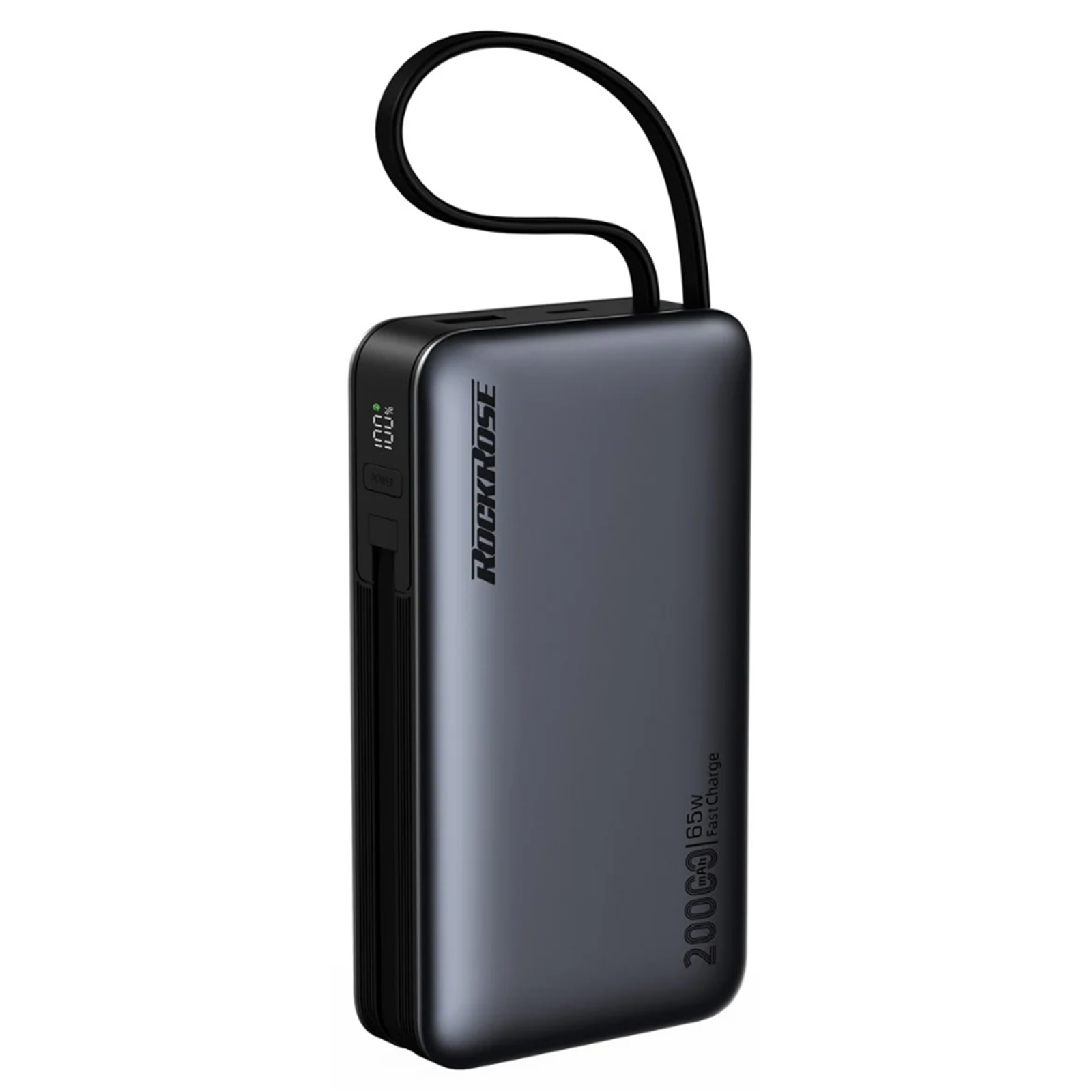 RockRose Powerlink G65 20000mAh 65W PD Quick Charge Power Bank - Space Grey - With Built-in USB-C & Lightning Cables