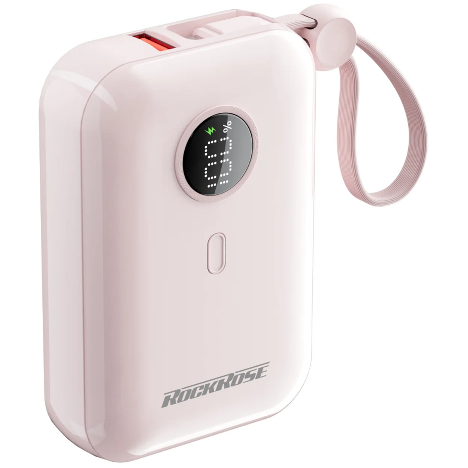 RockRose Lemonade 10 Neo 10000mAh Life Style Super Compact Power Bank - Pink Color - With Built-in USB-C & Lightning 20W Quick Charge Cables