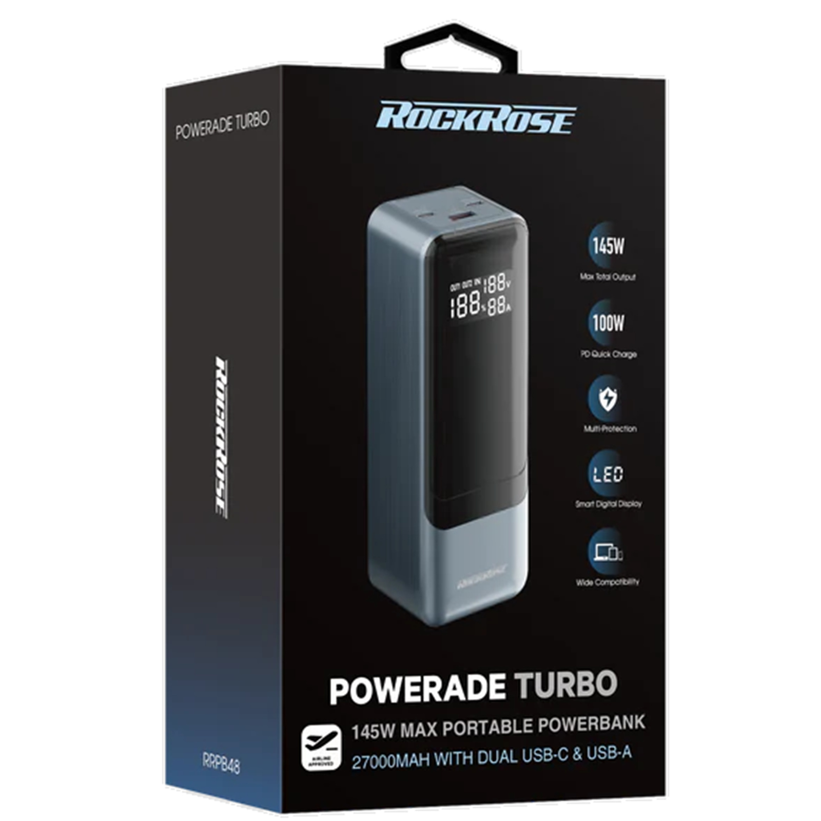 RockRose Powerade Turbo 145W 27000mAh Power Bank For Smart device and laptop - Dual USB-C Input & Output , LED Power Display