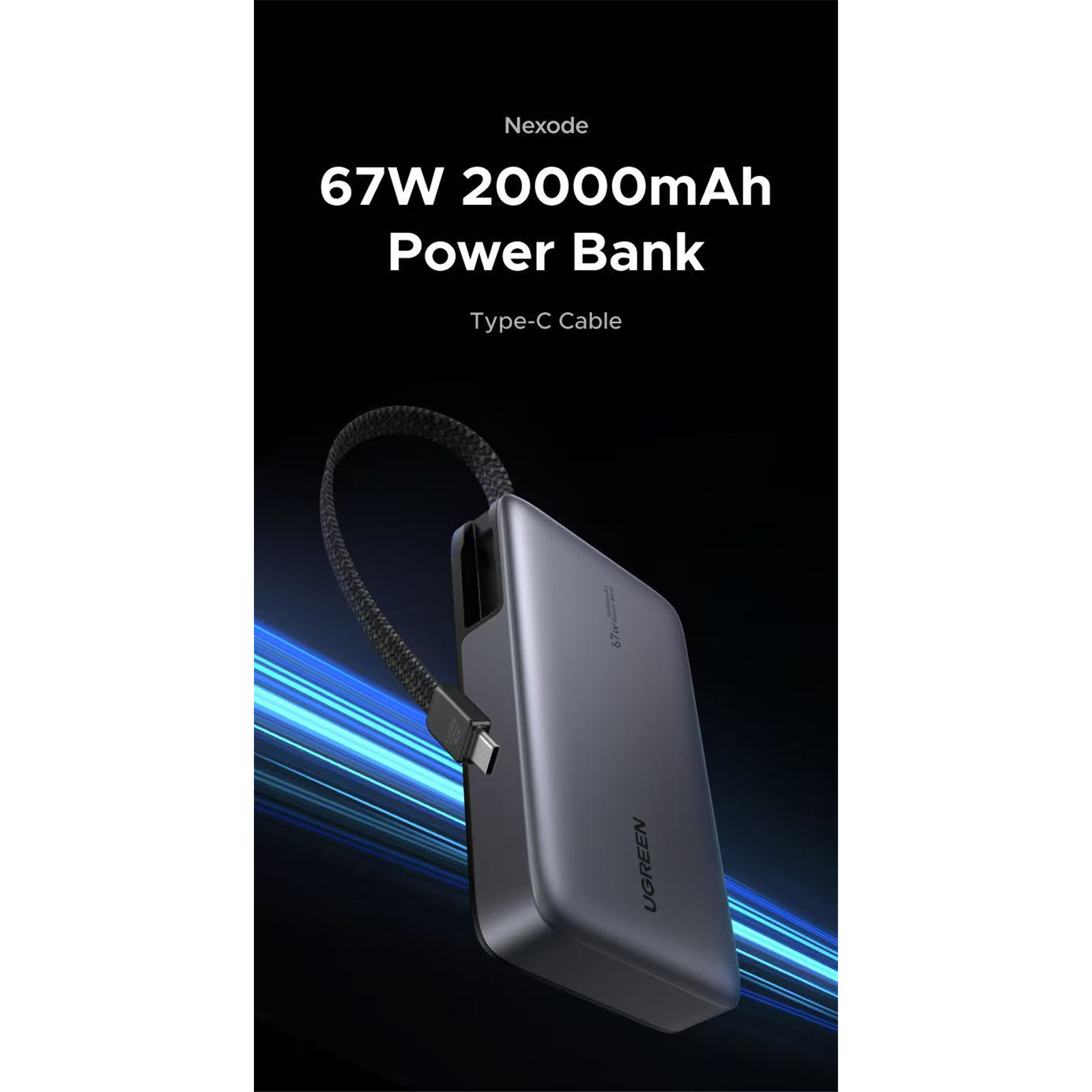 UGREEN Nexode 20000mAh 67W Power Bank with Built-in USB-C Cable Lanyard 1x USB-C(67W) 1x USB-A (33W)