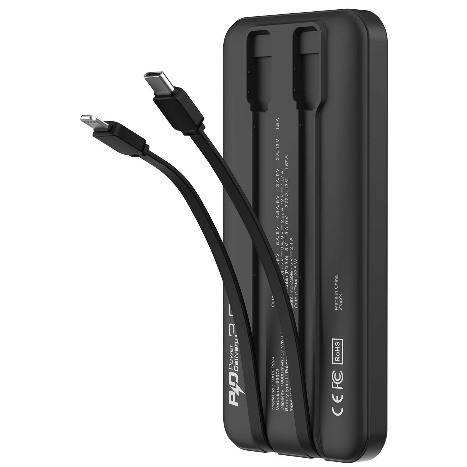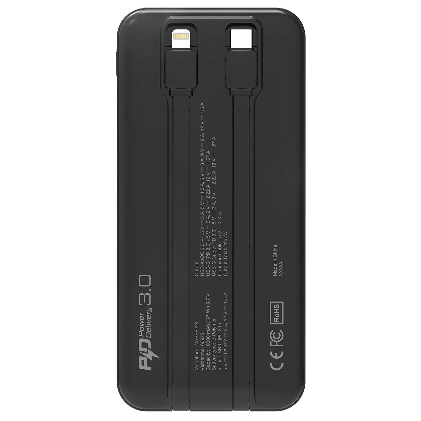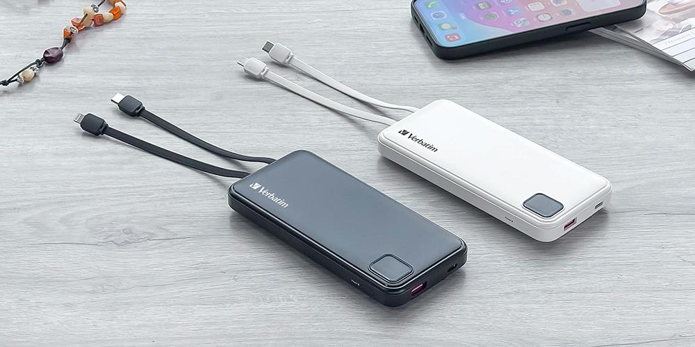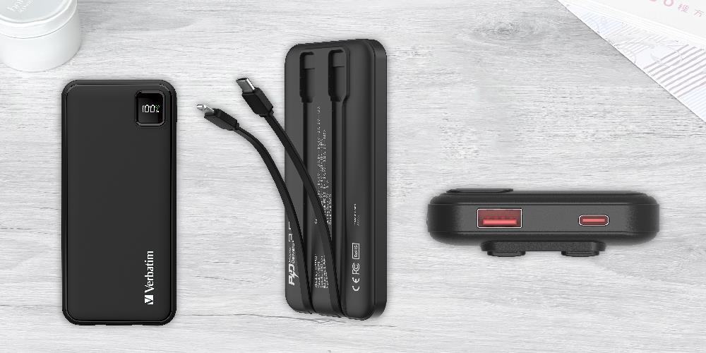 Verbatim 66972 10,000mAh Powerbank PD 3.0 & QC 3.0 with embedded cables - Black