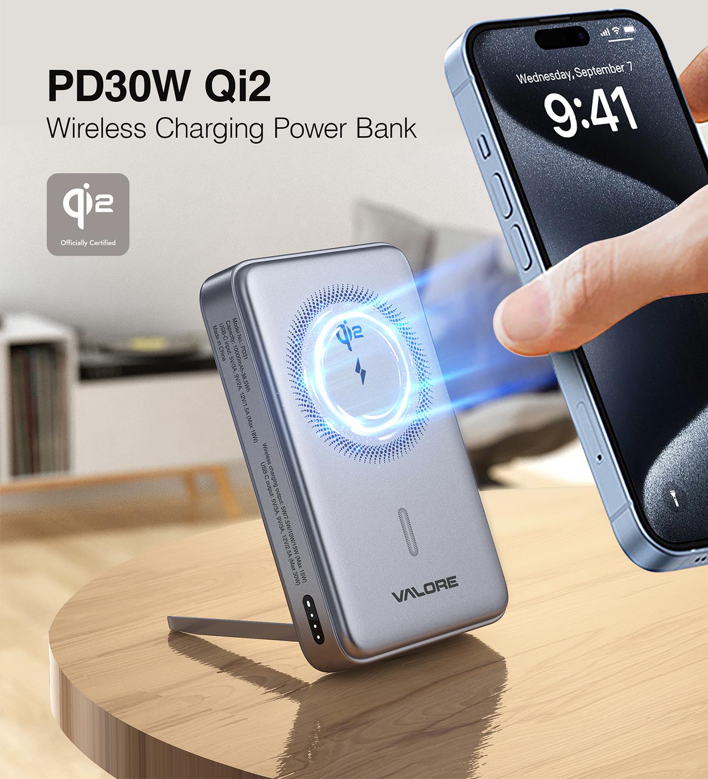 Valore PD30W 10000mAh Power Bank with Qi2 Wireless Charging