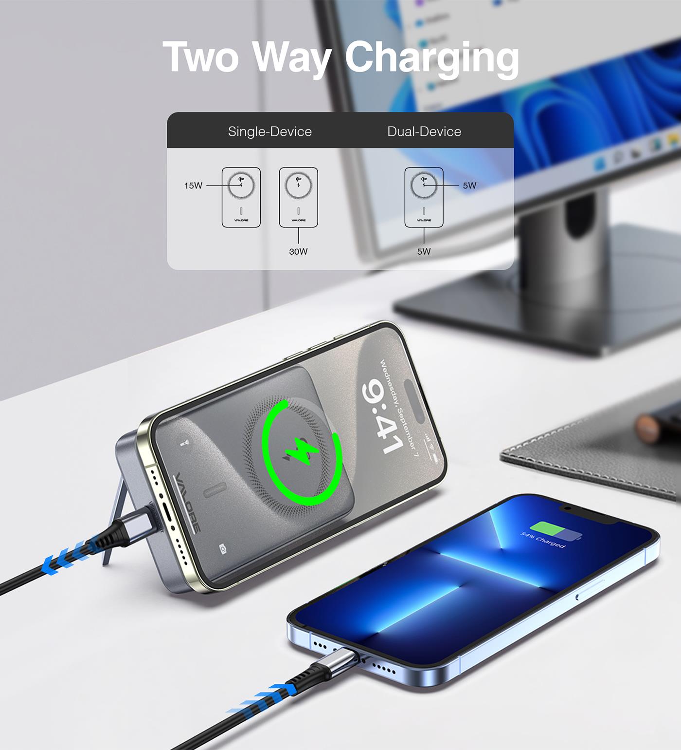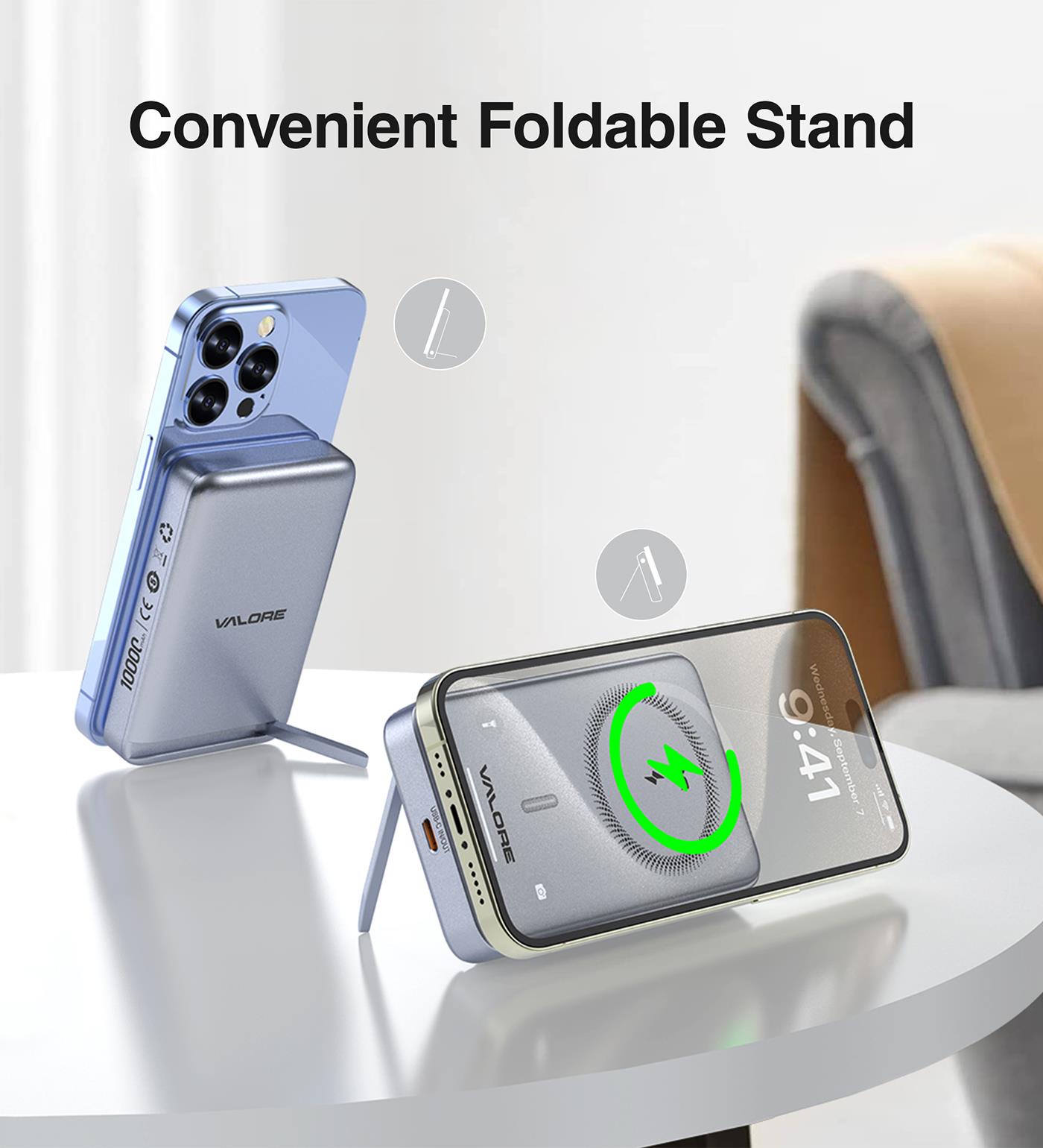 Valore PD31 10000mAh Qi2 Wireless Charging Power Bank Strong Magnetic - PD 30W Fast Charging - 15W Wireless Charging - Phone Stand