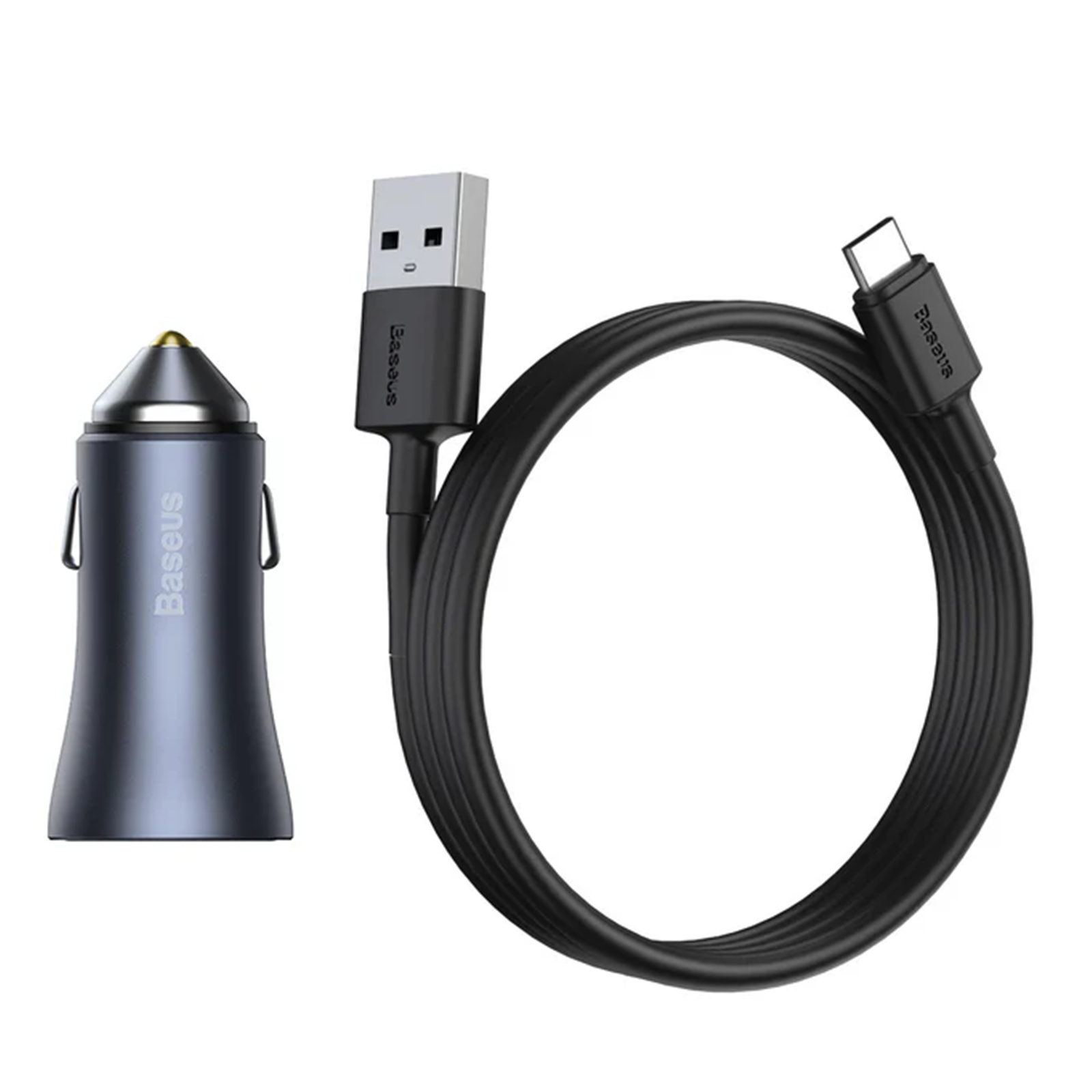 Baseus Golden Contactor Pro 40W Dual Quick Car Charger with USB-A to USB-C Cable - Dark Gray Simple WiringUSB for Type-C 5A 1.0m