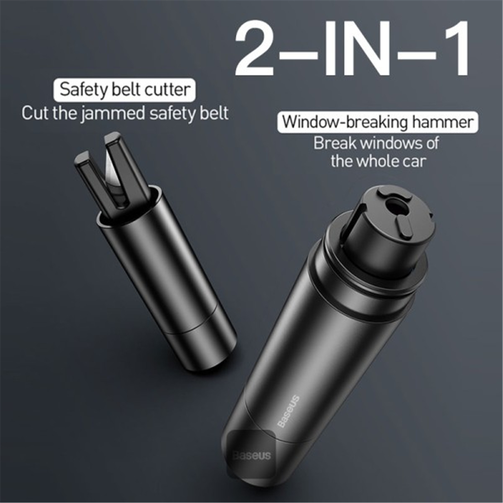 Baseus Sharp Tool Safety Hammer - Dark Grey Car Window / Glass Breaking + Safety Belt Cutting