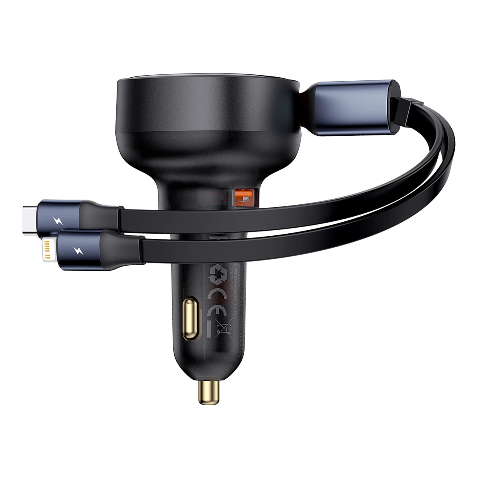 Baseus Enjoyment Pro 60W USB-C Car Charger with Retractable USB-C & Lightning Cable - Cluster Black