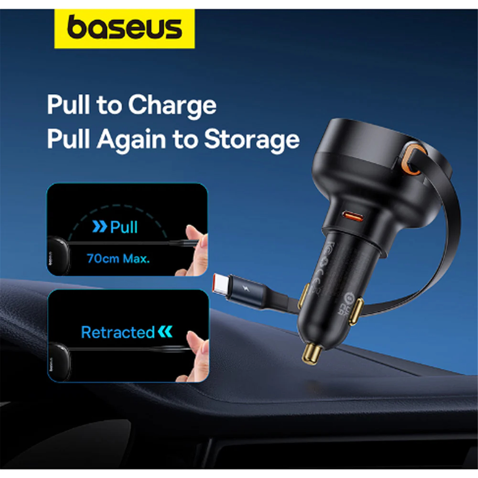 Baseus Enjoyment Pro 60W USB-C Car Charger with Retractable USB-C Cable - Cluster Black