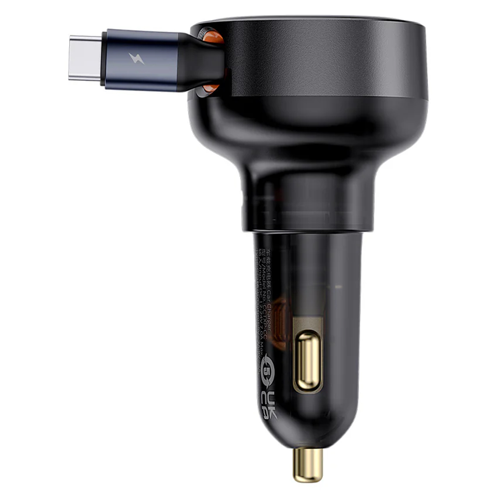 Baseus Enjoyment Pro Car Charger with Bulit in Retractable 60W Type-C Cable - Cluster Black