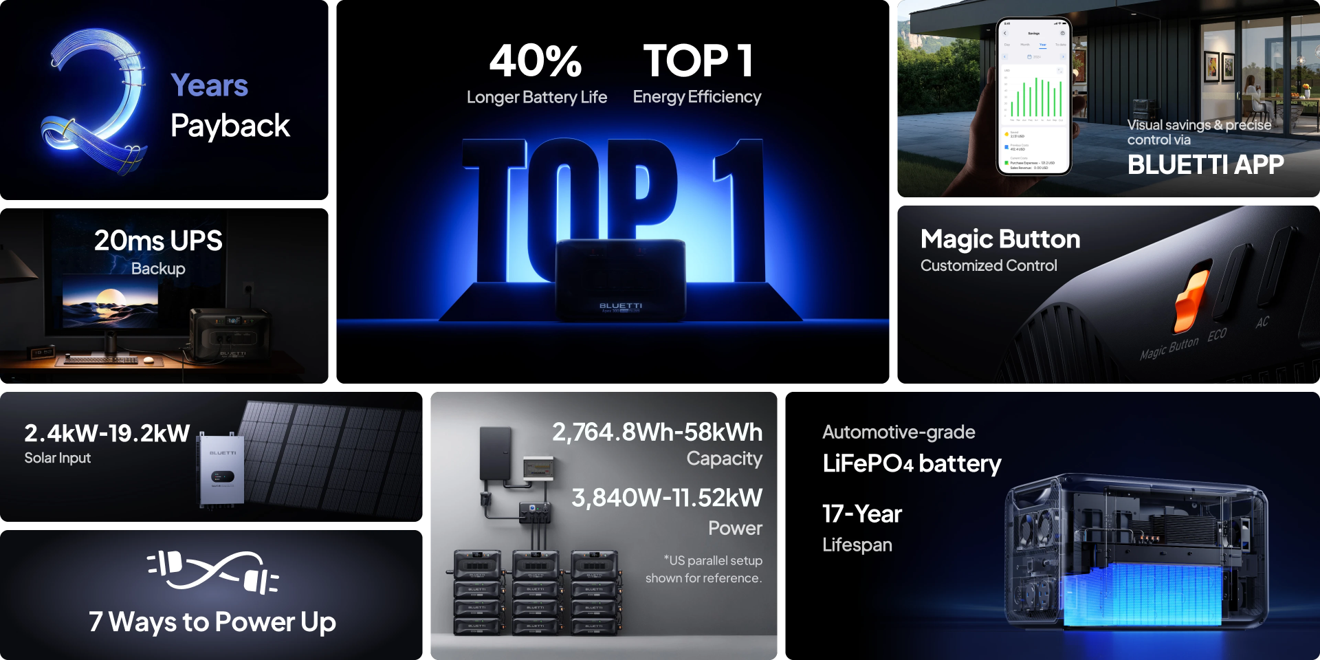 With the BLUETTI app, you're always in control. Get early alerts to prepare for outages, track your energy savings, and monitor power backup status in real time. AI-powered features and quick OTA updates keep your system up-to-date. Plus, remote access lets you manage your home's power from anywhere, anytime, for ultimate convenience and peace of mind.