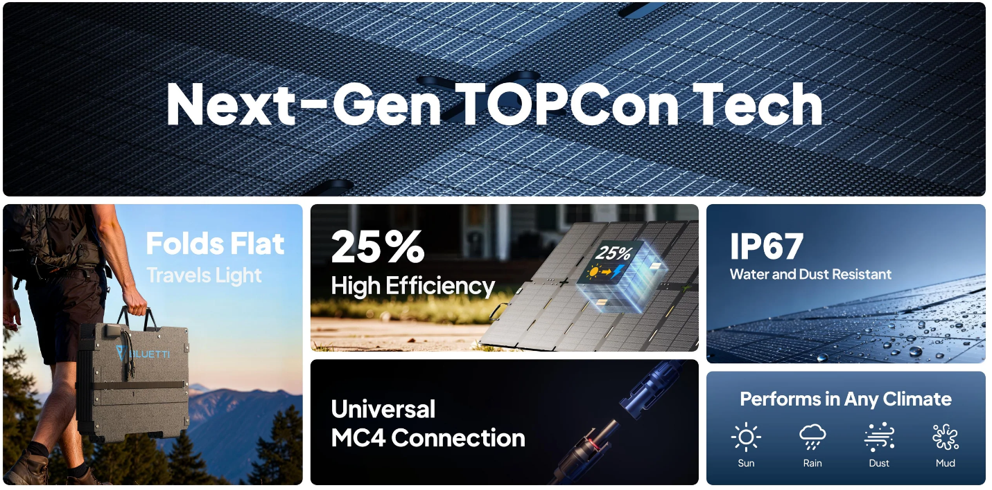 - Charge faster, save time. With 25% efficient TOPCon tech, you get more power with same sunlight.