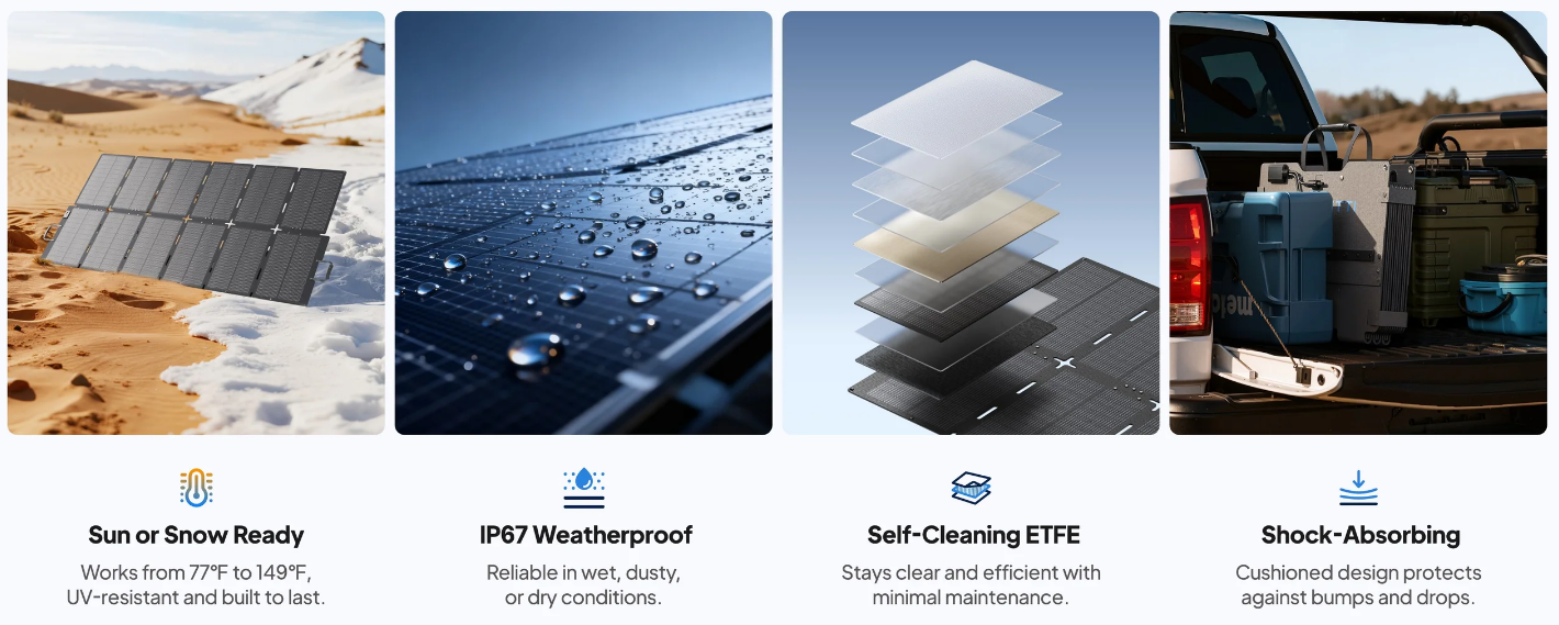- ETFE-coated surface sheds dirt with a quick wipe for maximum solar intake.