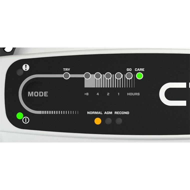 The CT5 TIME TO GO is the only charger on the market that can tell you when your battery will be ready for use. A series of LED lights indicate the different charging stages and how long it will take before the battery is sufficiently charged. There are also indicators that tell you when you can safely TRY to start your vehicle and when the battery is ready to GO. This information is for your convenience only; it is completely safe to leave the CT5 TIME TO GO charger connected 24/7, all year round.