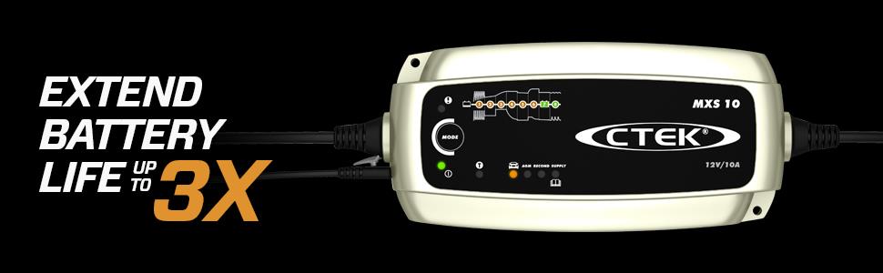 The MXS 10 is a fully automatic 8-step charger that delivers 10A to 12V batteries from 20-200Ah and is suitable for maintenance charging up to 300Ah. The charger is IP 65 classified (splash and dust proof), designed to protect vehicle electronics and non-sparking, reverse polarity protected and short-circuit proof.