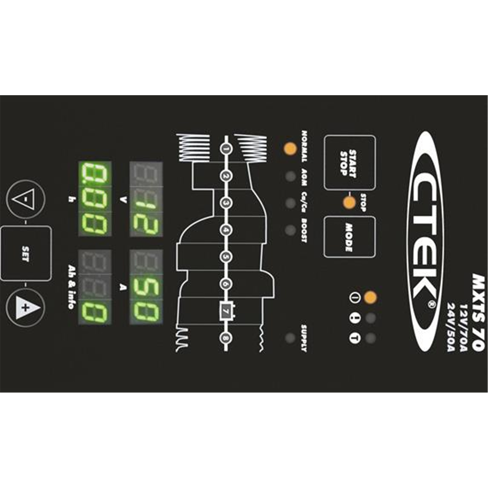The MXTS 70/50 is a powerful, state of the art workshop charger developed specifically for all 12V and 24V lead acid batteries, including AGM and EFB Stop/Start types.