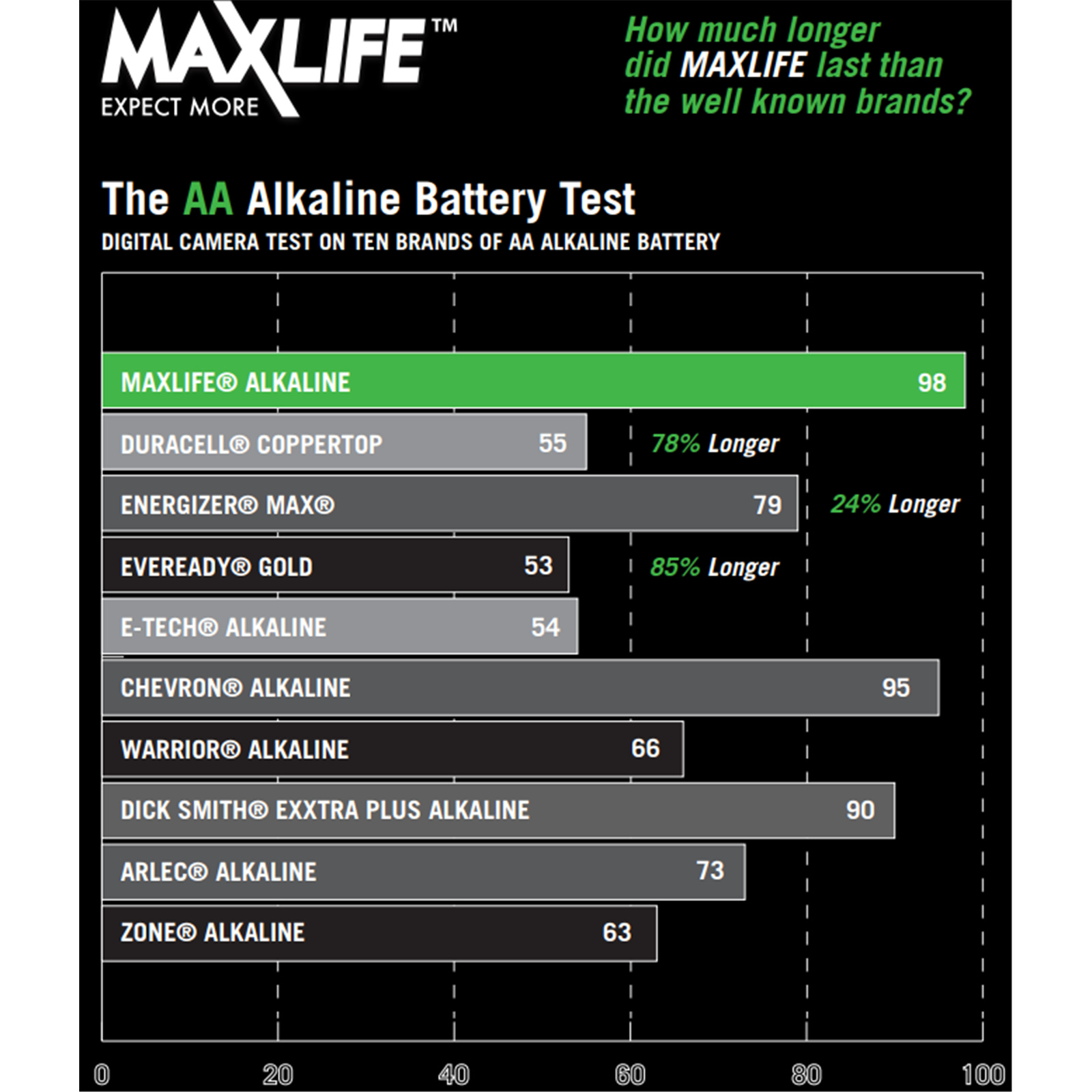 Product URL: https://www.pbtech.co.nz/product/BATMLF1001/Maxlife-BATAA-A-AA-Alkaline-Battery-20-Pack-Long-L