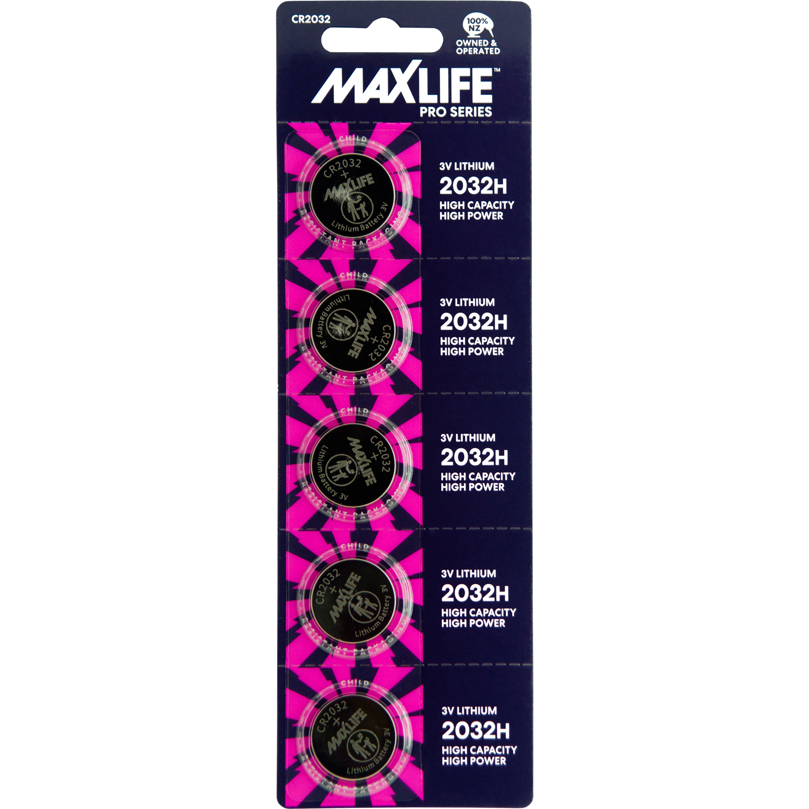 Product URL: https://www.pbtech.co.nz/product/BATMLF2445/Maxlife-BAT2032-H5-CR2032H-HIGH-POWER-5-PACK