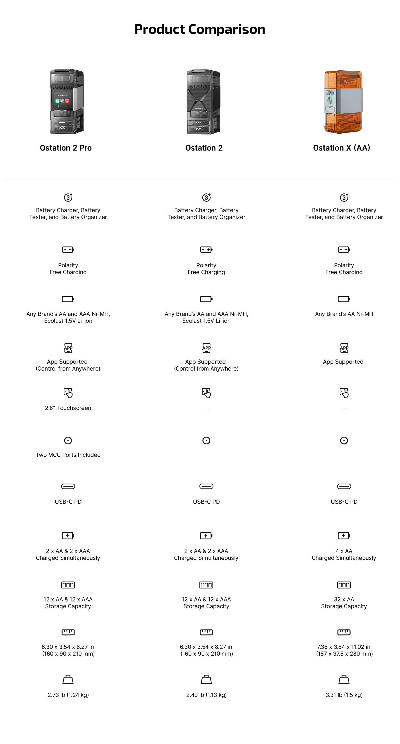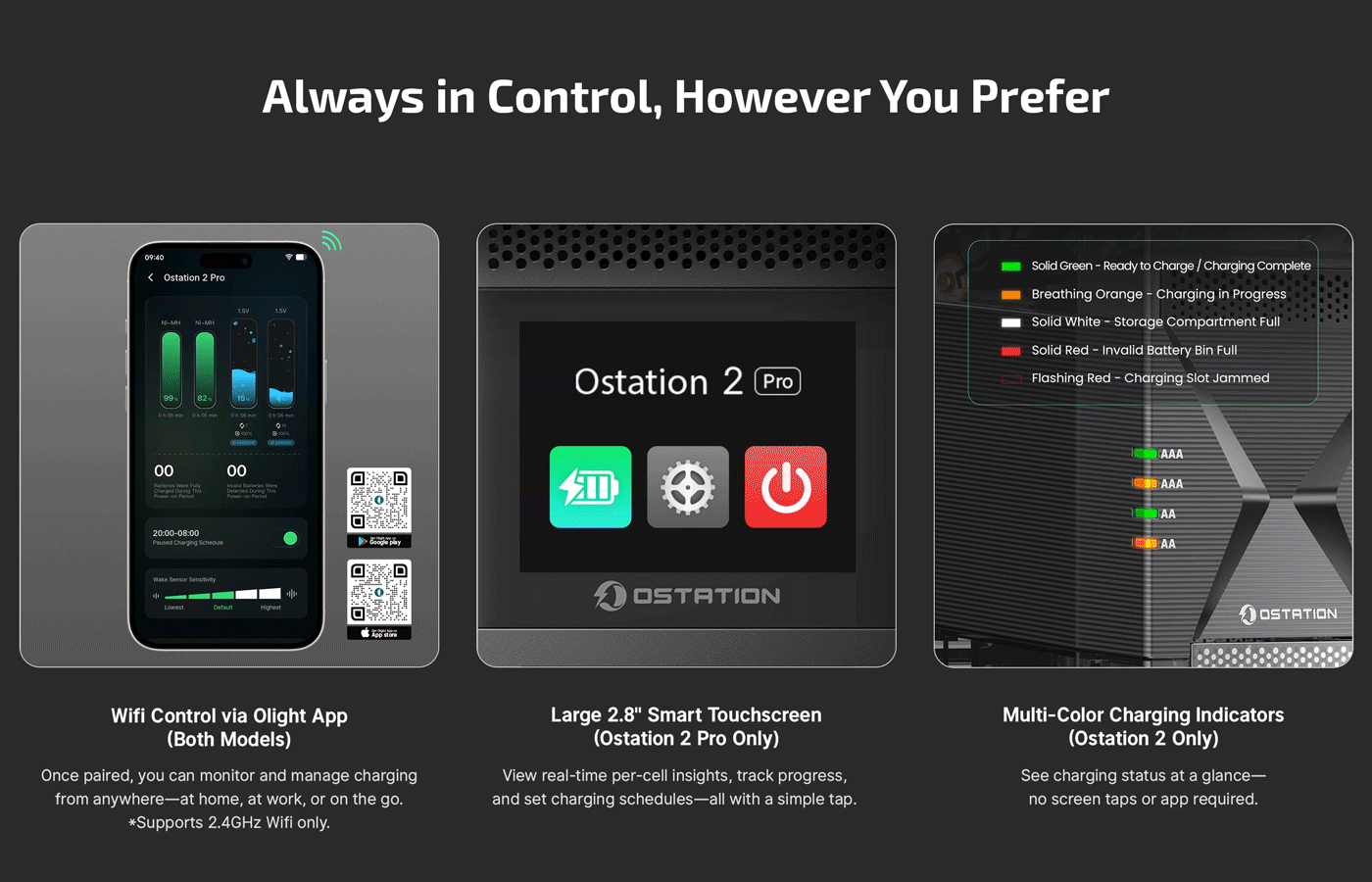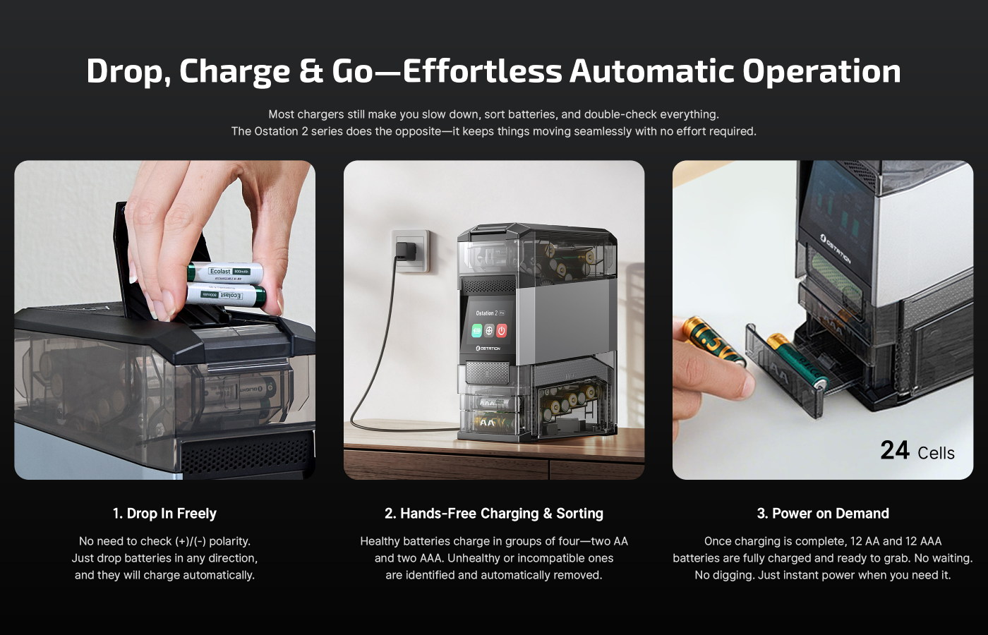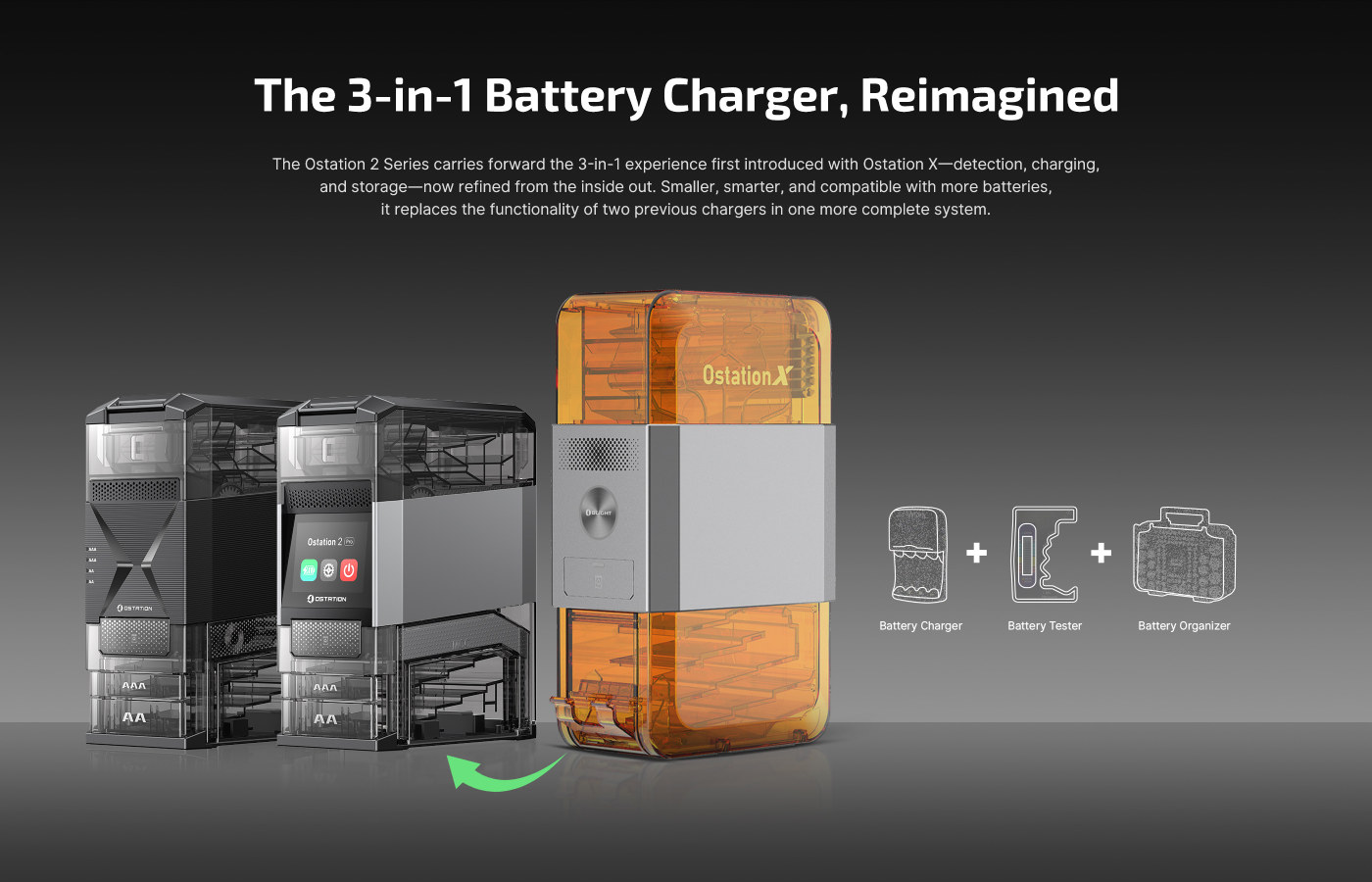 Ostation 2 Series 3-in-1 Smart Battery Hub for AA & AAA Rechargeable Ni-MH & Li-ion Batteries