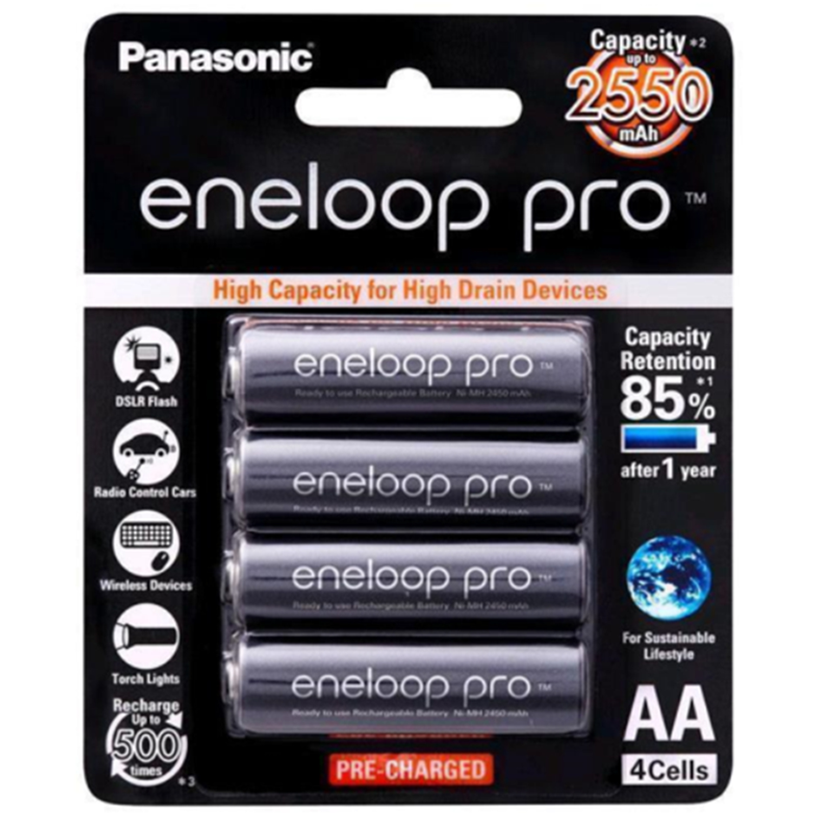 Panasonic BK-3HCCE BK-3HCCE/4BT Eneloop PRO AA 4PK Pack 2550mAh 1.2V designed for high drain devices - Rechargeable Batteries