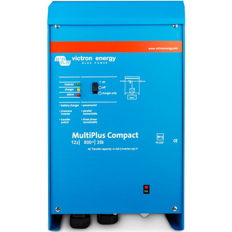 The MultiPlus, as the name suggests, is a combined inverter and charger in one elegant package. Its many features include a true sine wave inverter, adaptive charging, hybrid PowerAssist technology, plus multiple system integration features.