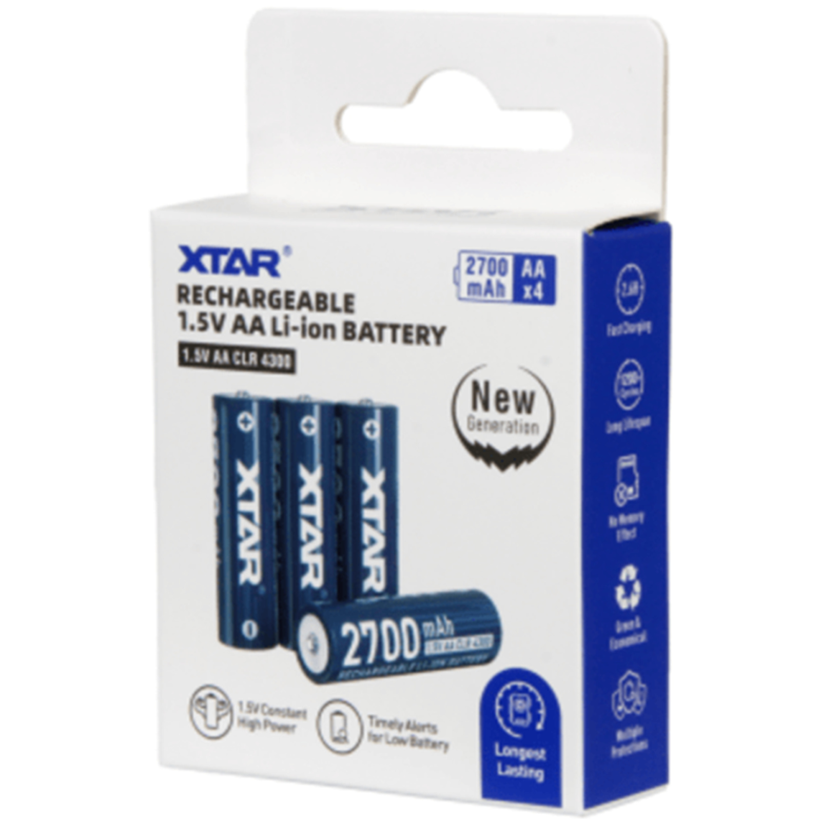 XTAR AA Lithium Rechargeable Battery 4 Pack 1.5V 2700MAH 4300WH (Li-ion)