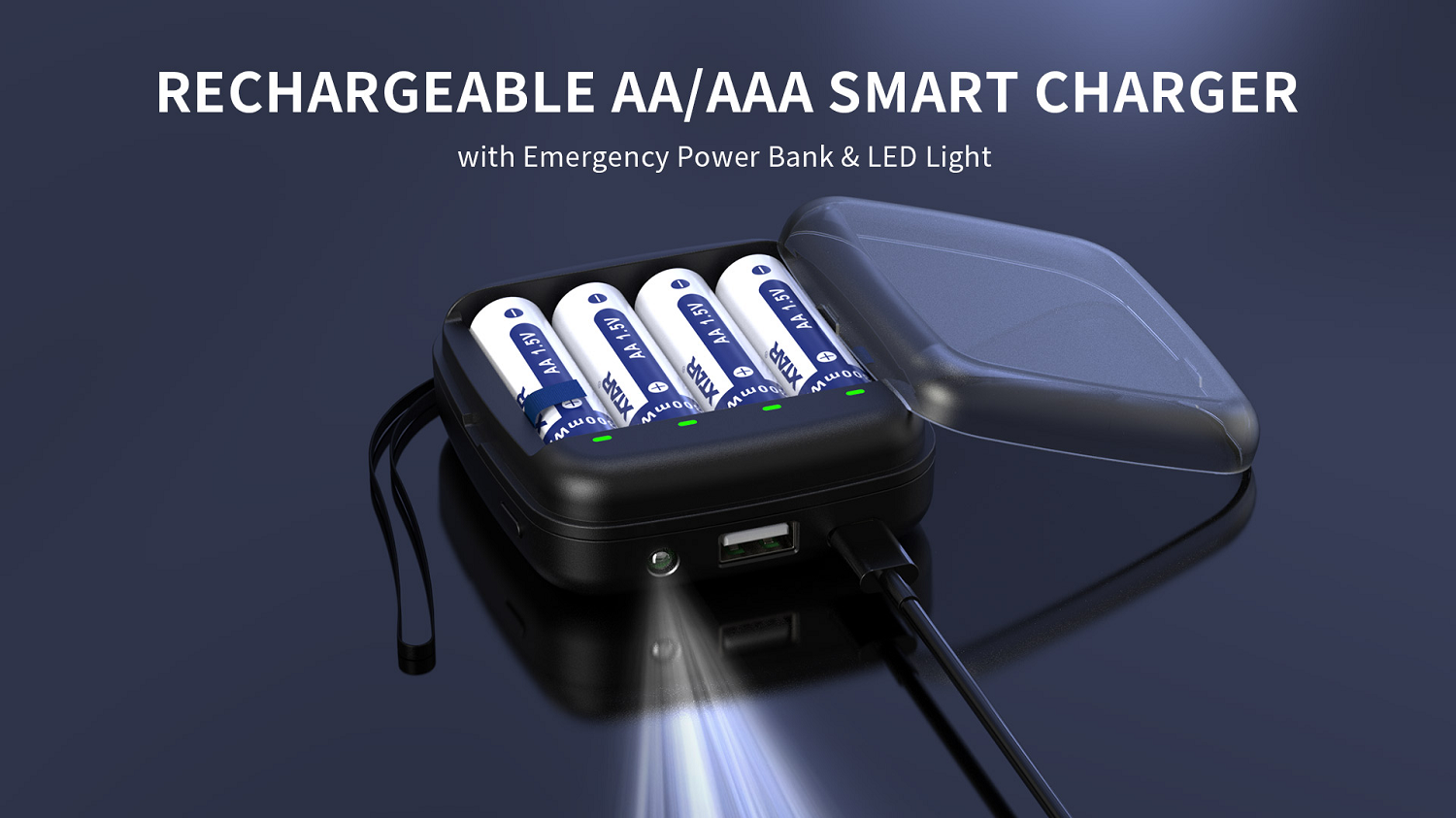 Rechargeable AA/AAA Charger for 1.5V Li-ion & 1.2V Ni-MH Emergency power bank : supports Li-ion/Ni-MH/dry batteries