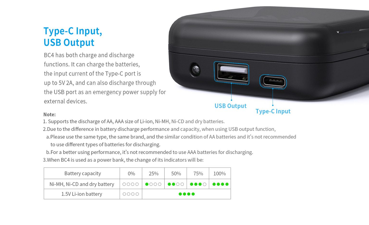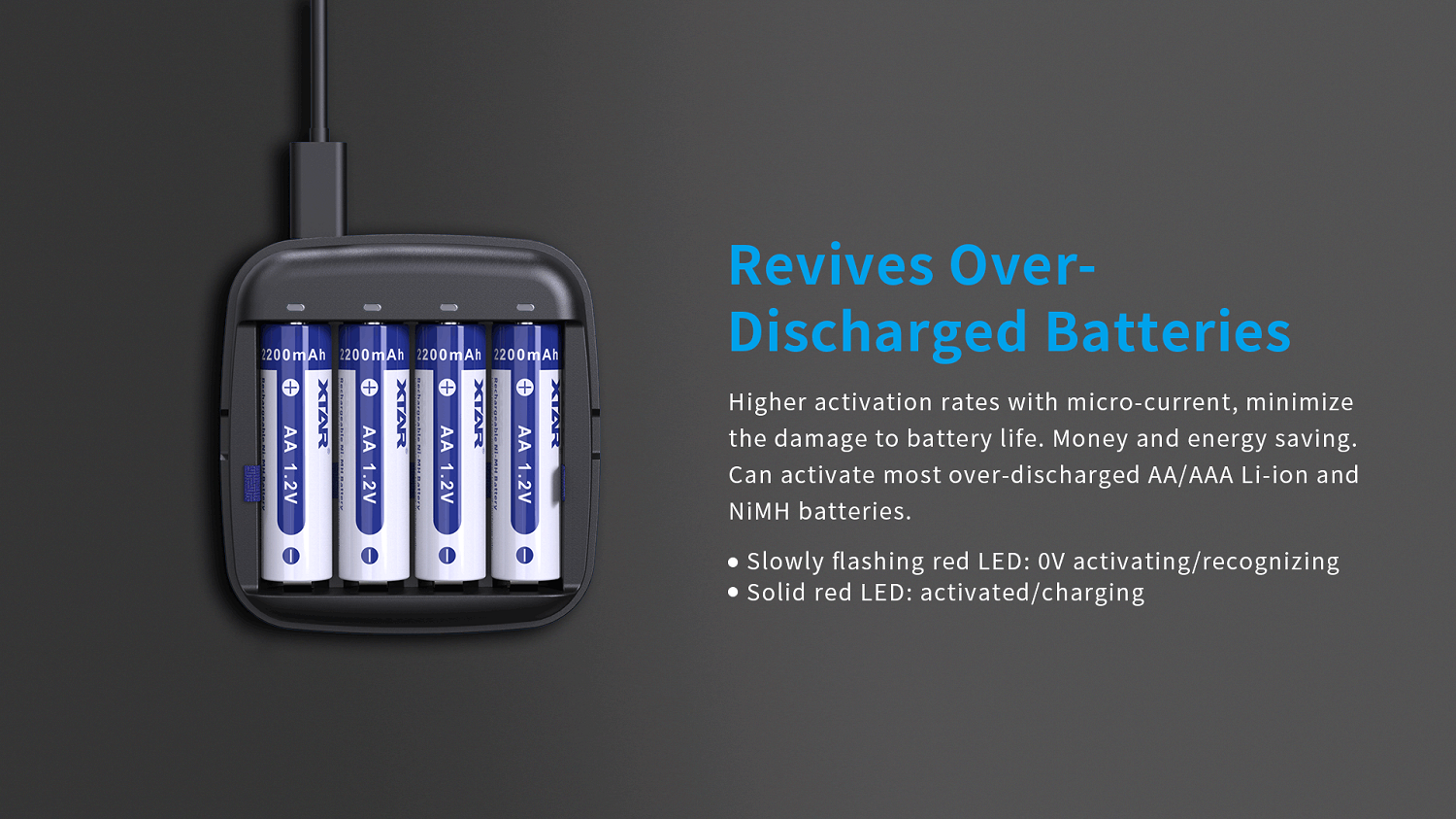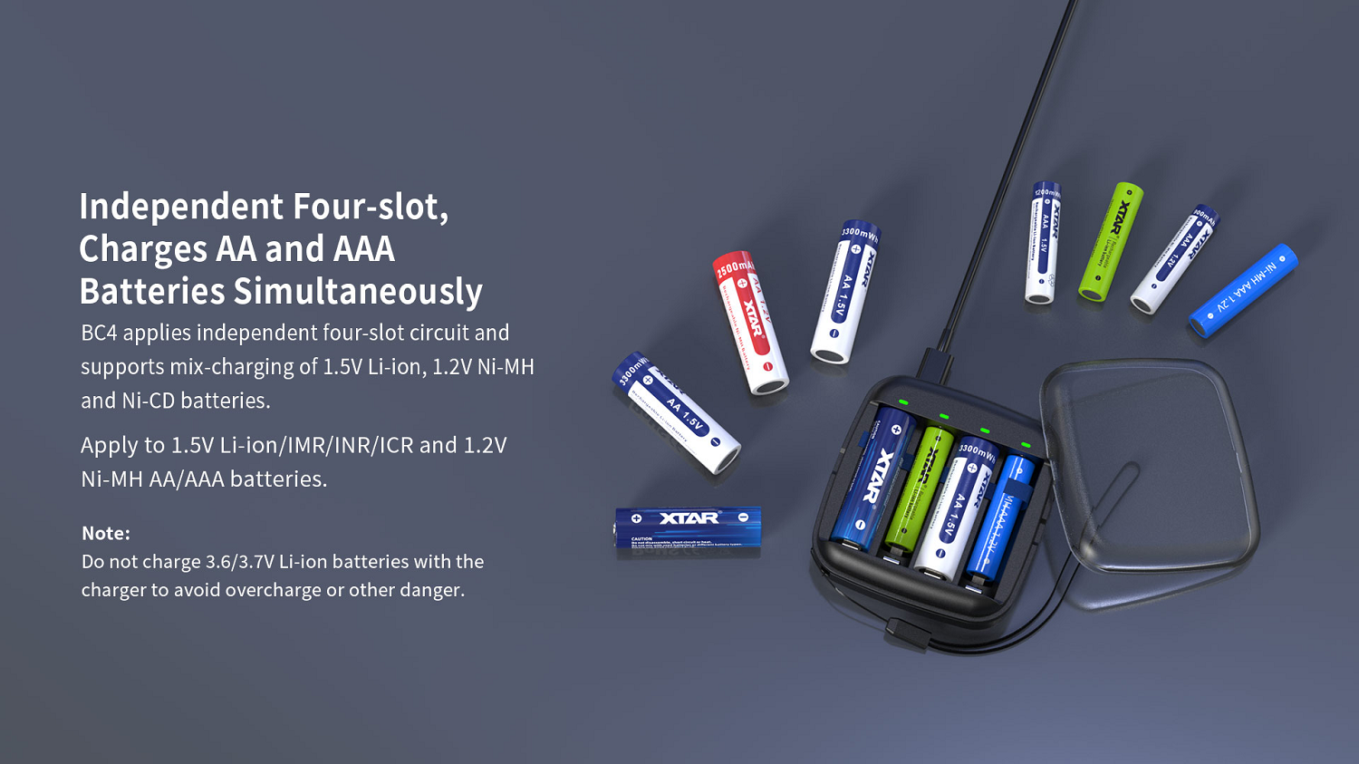 XTAR BC4 AA / AAA NiMH Battery Charger With LED Light and Power Bank Function